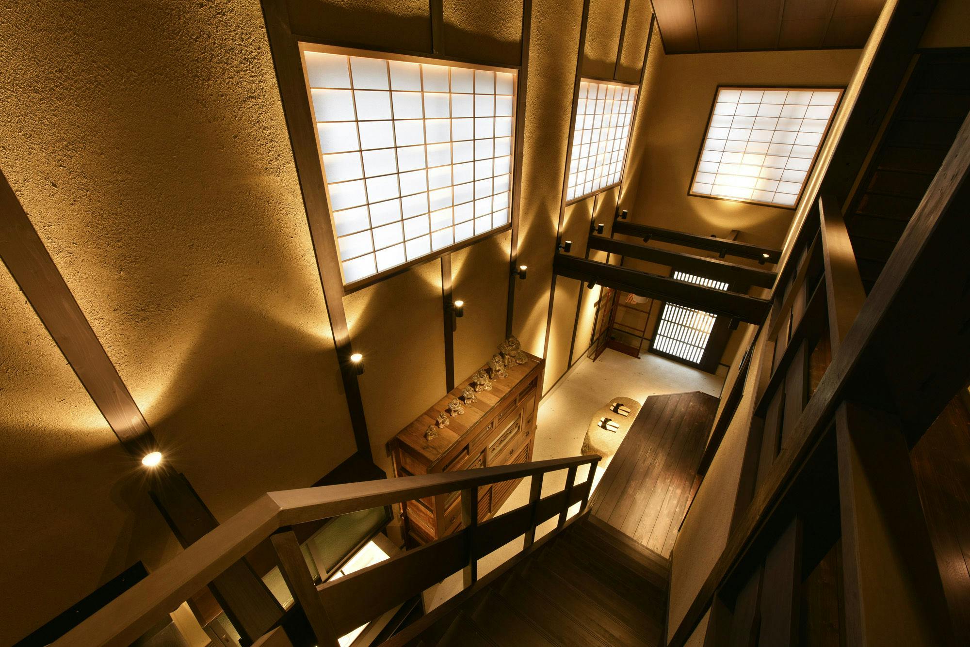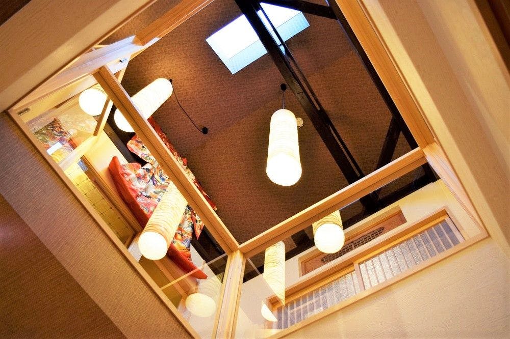 築100年の町家を改装。土間のダイニングキッチン、坪庭が見渡せる浴室、開放的吹き抜け空間など、京町家らしさが詰まったお宿です。京都駅や地下鉄五条駅にも程近い、町家が建ち並ぶ細路地に佇んでいます