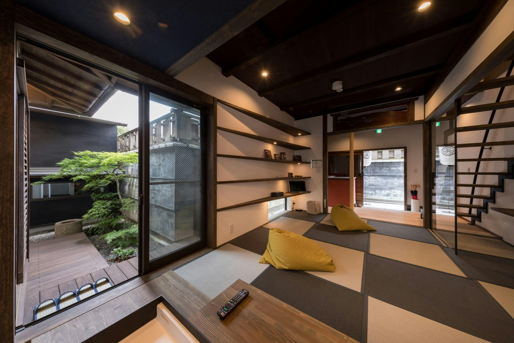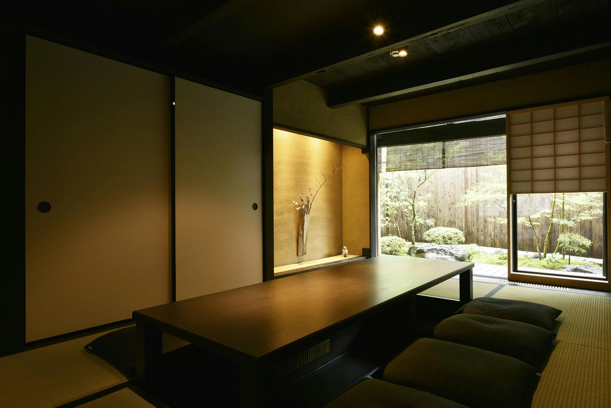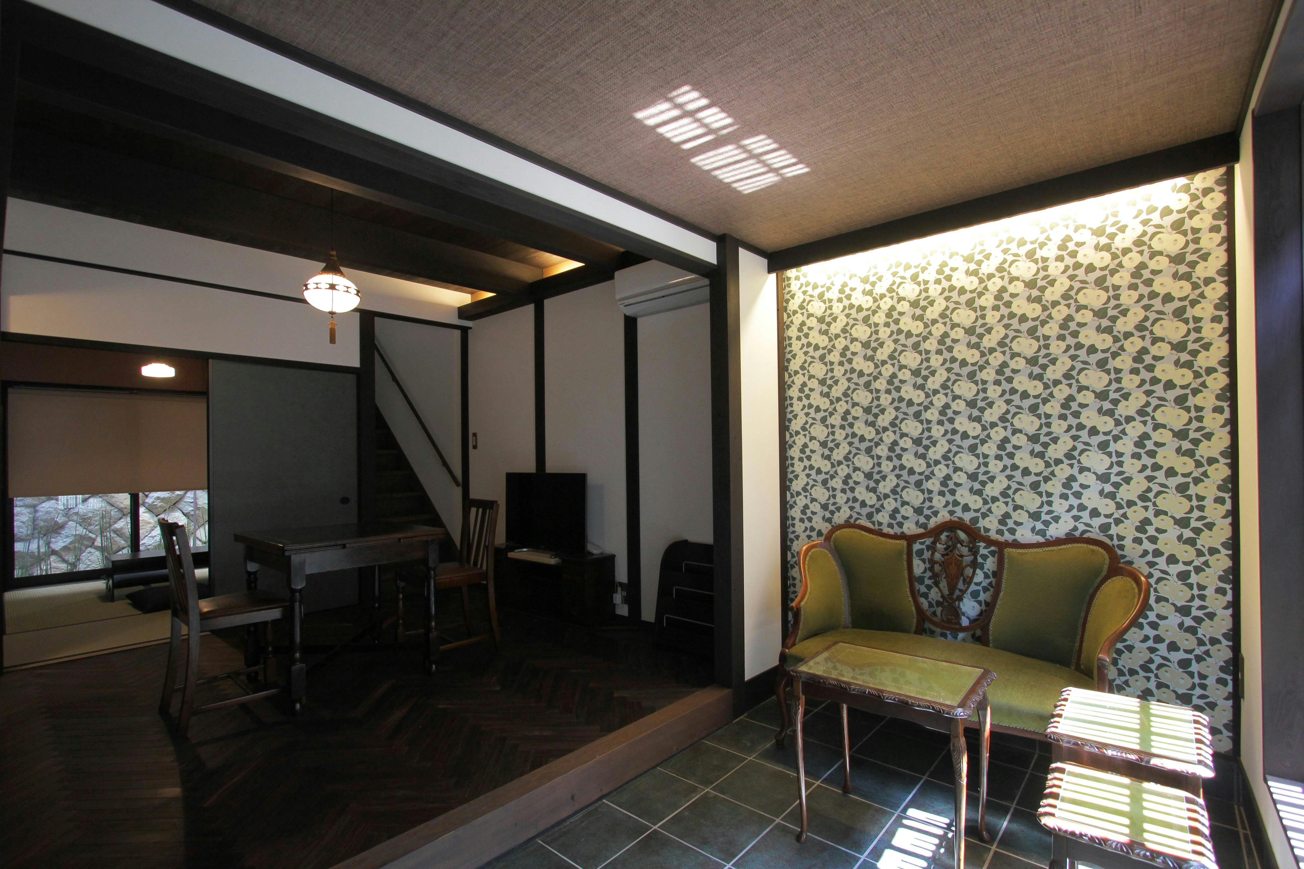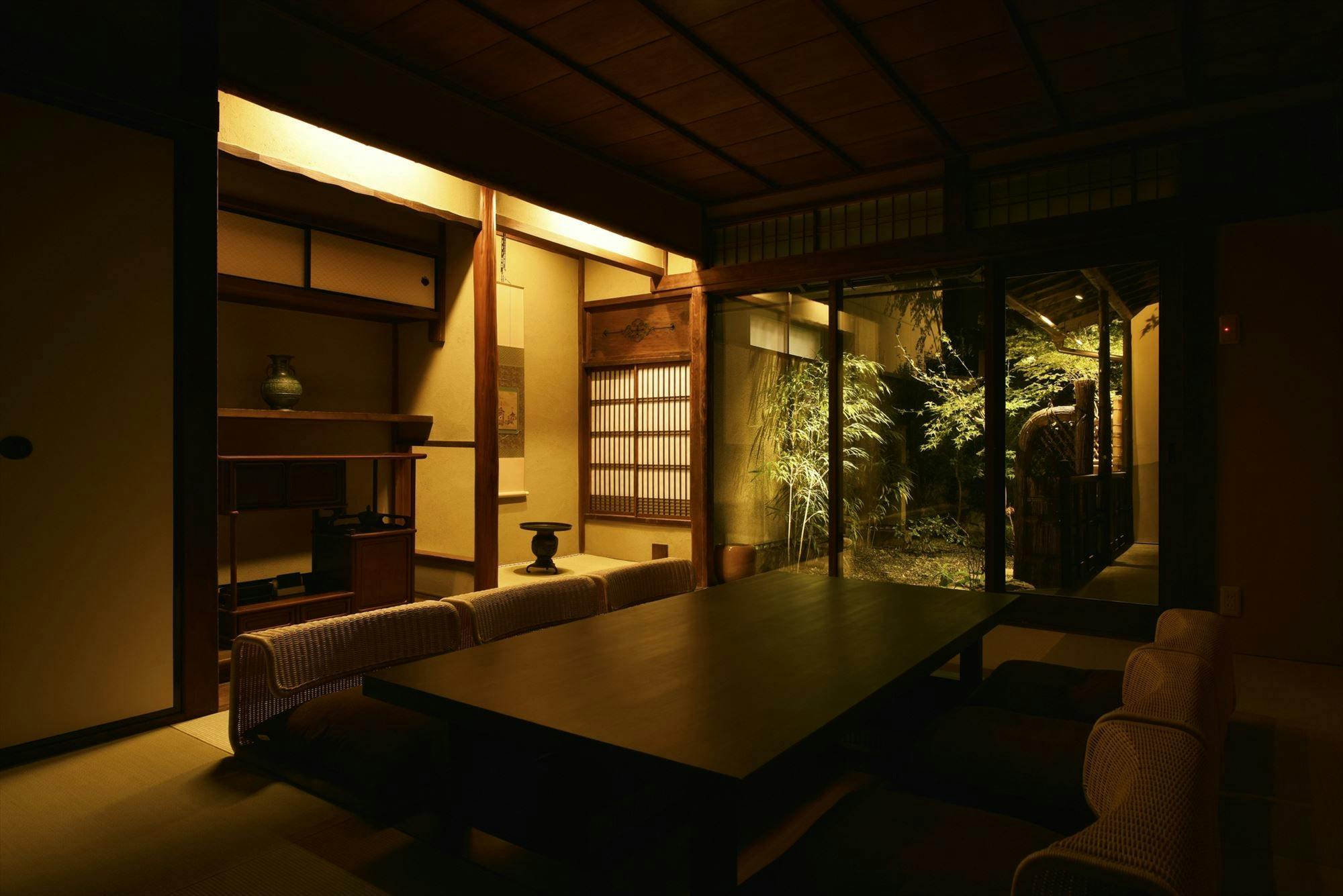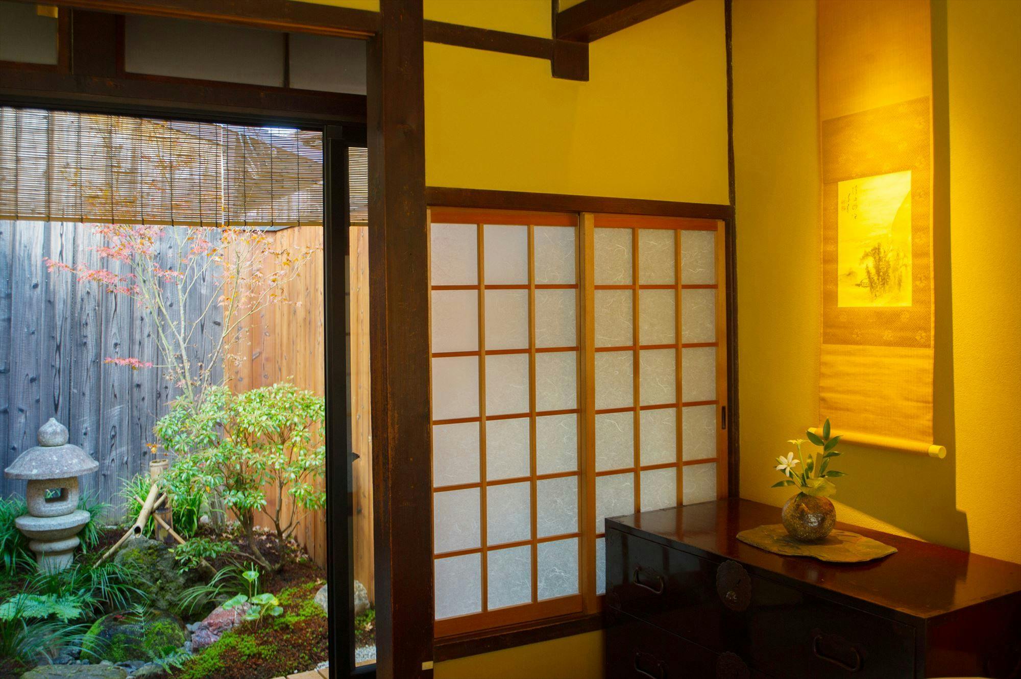 京町家の建築当時から残る古建具がどこか懐かしく、京都の伝統の京唐紙などの装飾に落ち着いた居心地の良さが感じられます。四季それぞれに彩るお庭を眺めながら「私だけ」の京都時間をゆったりとお過ごしください。