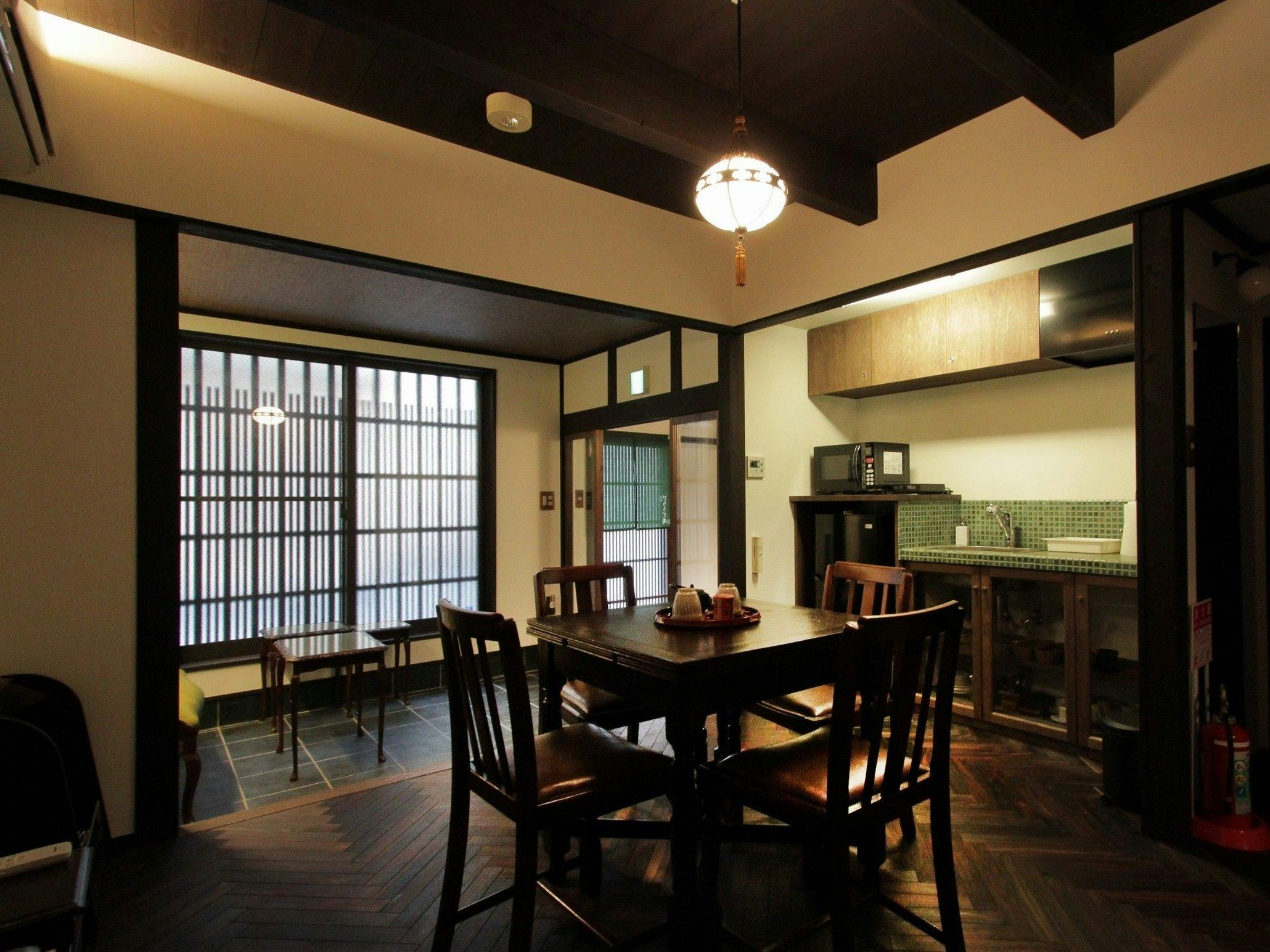 囲炉裏付き京都町家の一棟貸し、一日お一組様限定です。アメニティも充実、お一人様からグループまでご利用いただけます。ペット犬もご一緒にご宿泊頂けます。