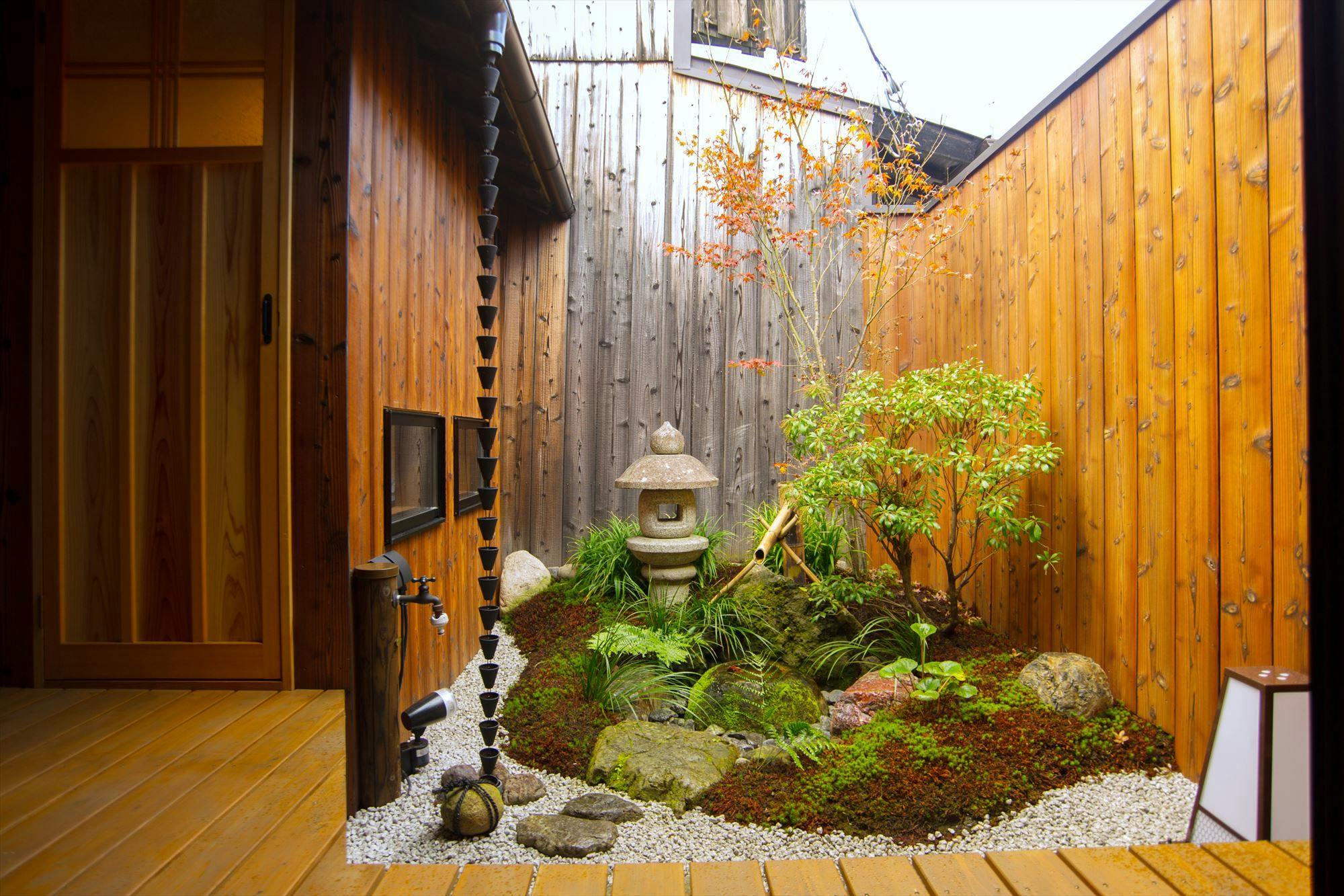 細部のディテールまで町家本来の姿を再現することにこだわった京町家宿。広い庭が自慢の「藏や千本三条」でごゆっくりお寛ぎください。