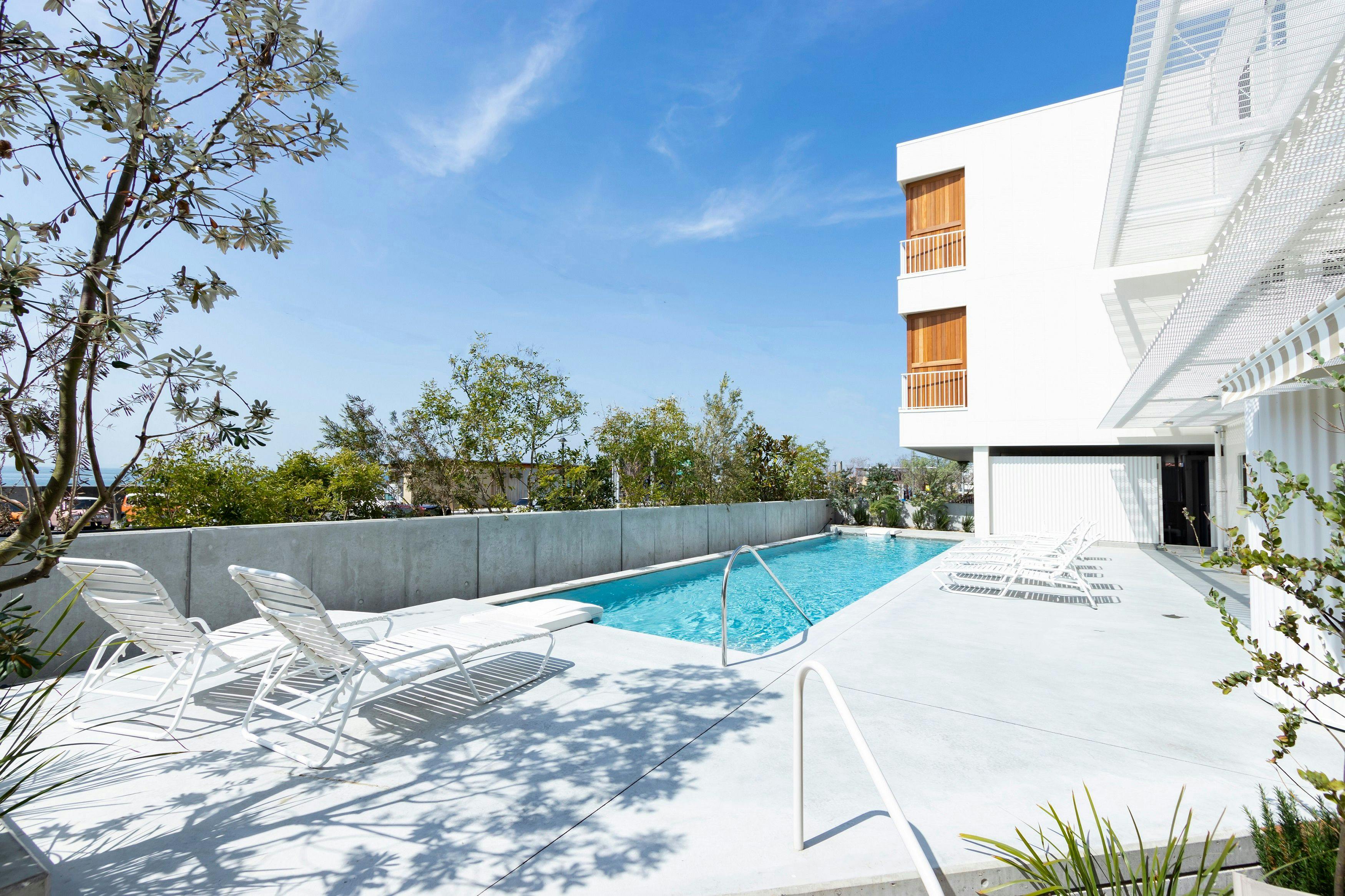 ―2023年4月24日 OPEN―目前に海を見据える全17部室のライフスタイルな海ホテルクールでアーティーな佇まい、海に沈む夕陽とアート、サウナをお楽しみください。