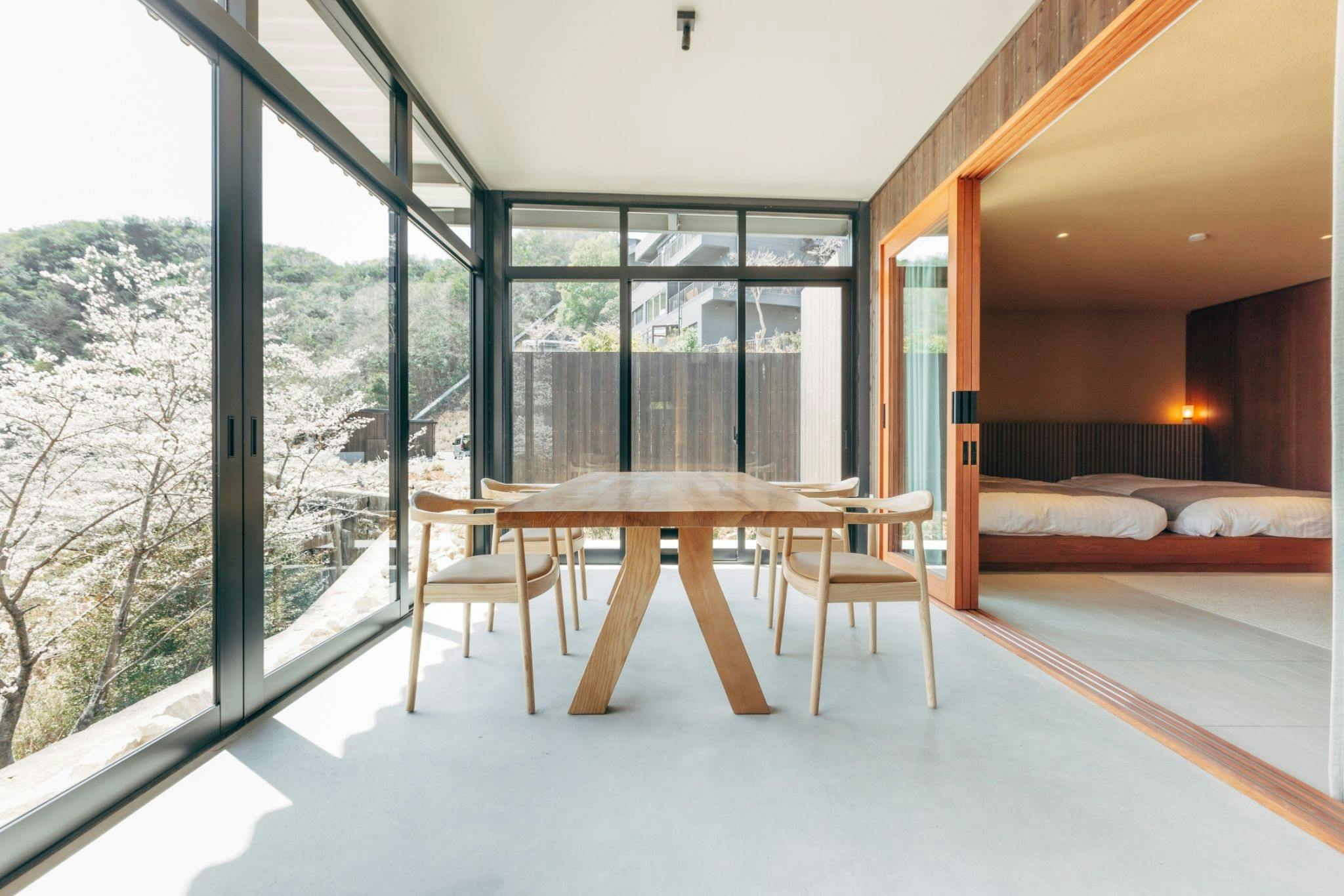 全室アウトドアリビング/キッチン付き額縁のように瀬戸内の景色を切り取り陽の移ろいを映しだすキャンバスとしてしつらえた1日4組だけの特別な空間です。