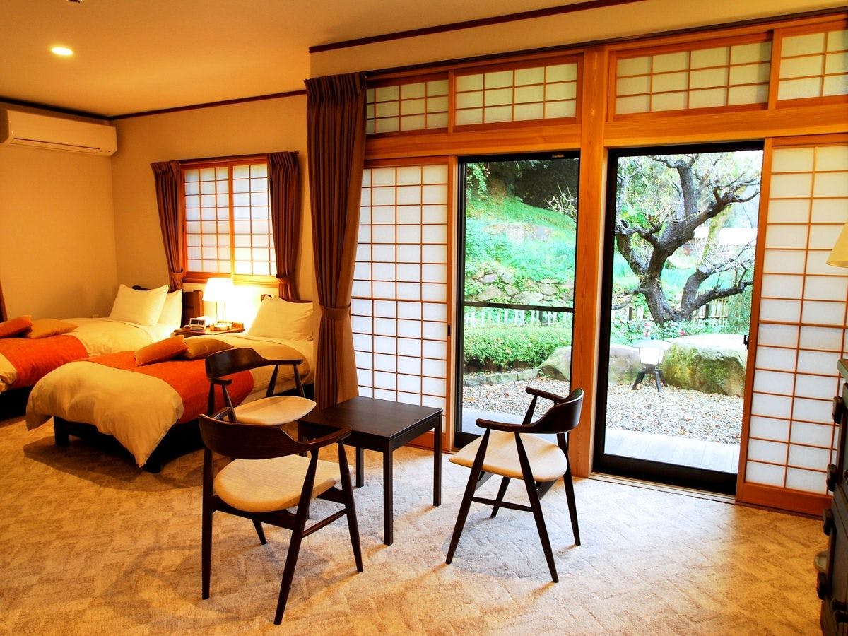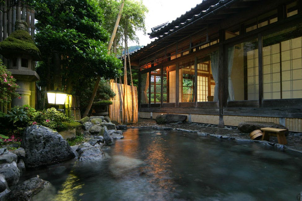 源泉かけ流しのお湯、板長の個性が光る料理が人気の全9室の大人の隠れ宿。大正ロマン香る畳みを基調とした純和風空間で癒しのひと時をお過ごし下さい。