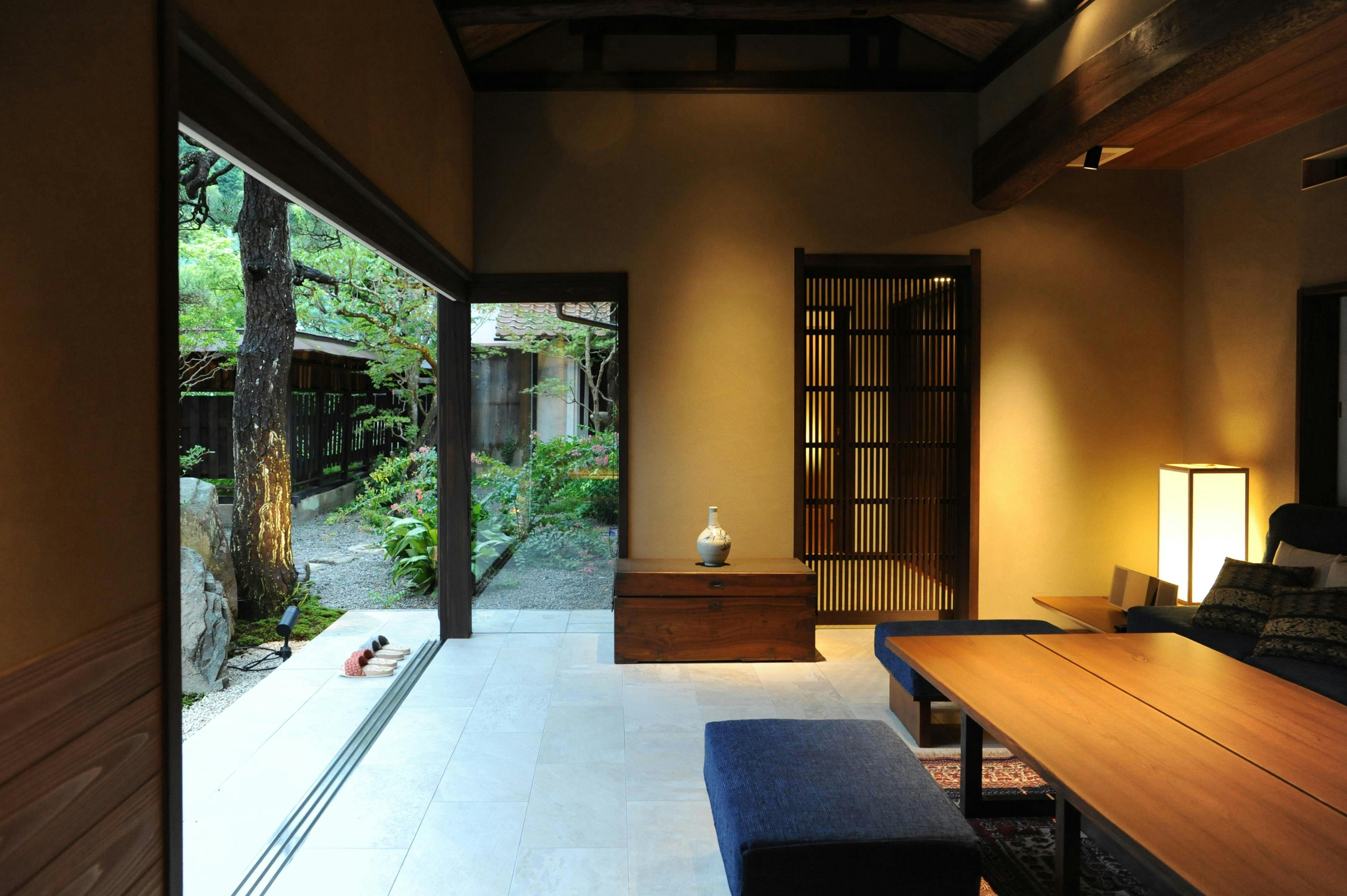 高級旅館が運営していた、ペンションを2019年にフルリノベーションした一棟貸切の別荘です。有福温泉街まで徒歩2分。お庭ではBBQなどをご利用いただけます。