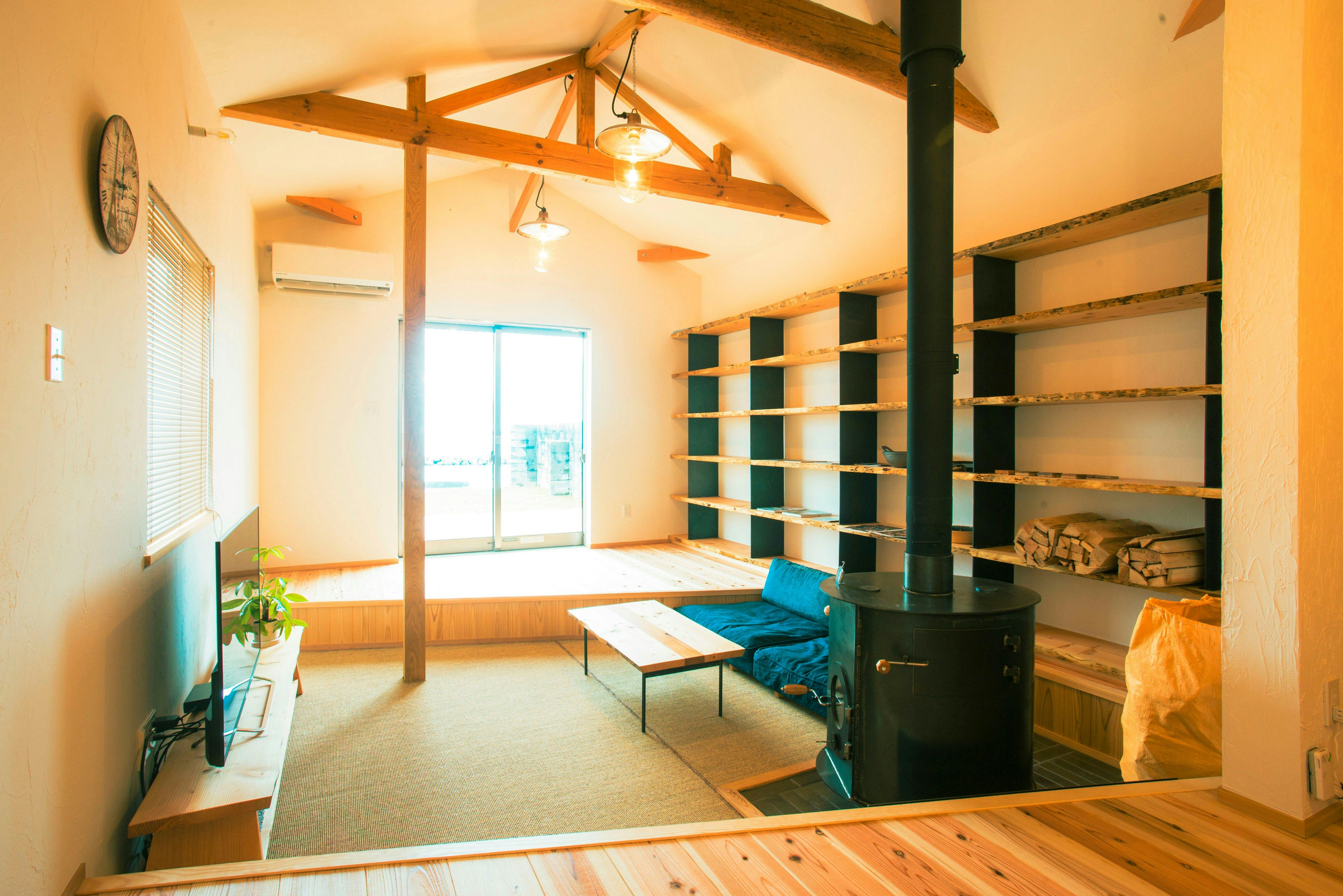 築80年の古民家を2016年にリノベーションした一棟貸切の別荘です。裏庭を抜けると砂浜の海岸が広がっており、のどかな風景が広がります。お庭ではBBQ、ピザ窯をご利用いただけます。