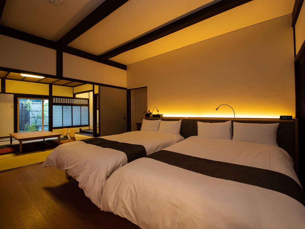 ~1棟貸切!町家造りの2階建て古民家で暮らすような旅を~古民家をリノベーションした快適で温かみのある和モダンな空間。3つの寝室、庭を望む和室、ハンモックのあるお部屋やロフトにキッチン、檜風呂あり。