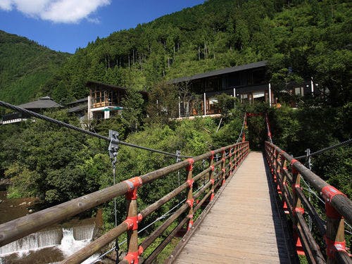 時計もテレビもなく、日常生活を忘れるひとときを楽しむ。料理やサービス、建築に至るまで全て地元、土佐山にこだわった地産地消の宿。