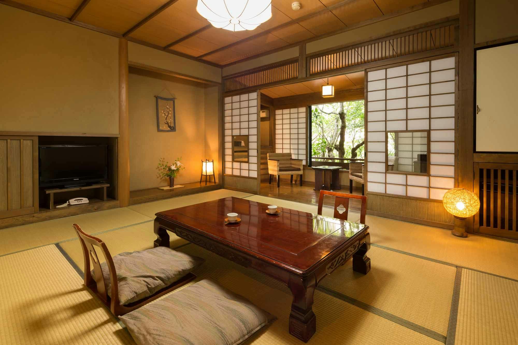 閑静な山間にある黒川温泉旅館。大正浪漫な雰囲気の内風呂や、プライベートに楽しめる家族風呂でほっとするひと時を。囲炉裏を囲んでの「囲炉裏料理」も是非お楽しみください。