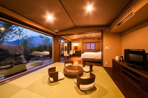その名の通り鮮やかな由布岳を望める温泉旅館。食事処や露天風呂などから雄大な由布院の風景を堪能できます。もちろん温泉は100%源泉かけ流し。大自然の恵みを由布院の地でお楽しみ下さい。