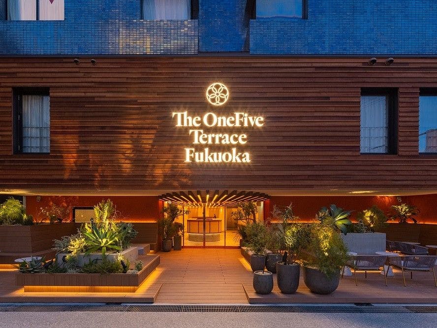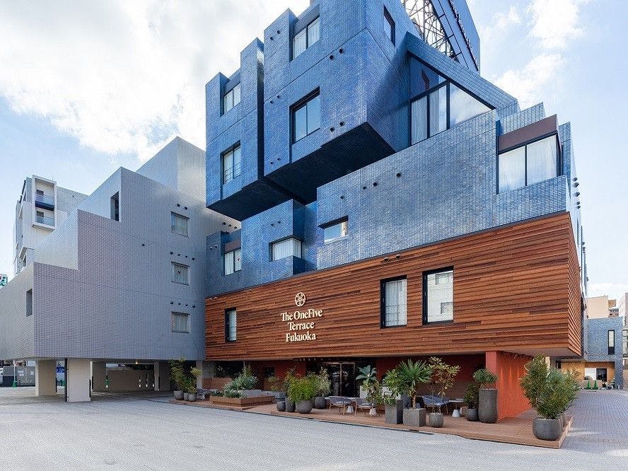 博多の中心。 喧騒から一歩離れたエリアに建つプライベートリゾート、ザ・ワンファイブテラス福岡。ウェルカムサービスとして、日本茶とパティシエ特製のスイーツを用意しています。開放的なテラスでもゆっくり寛げ