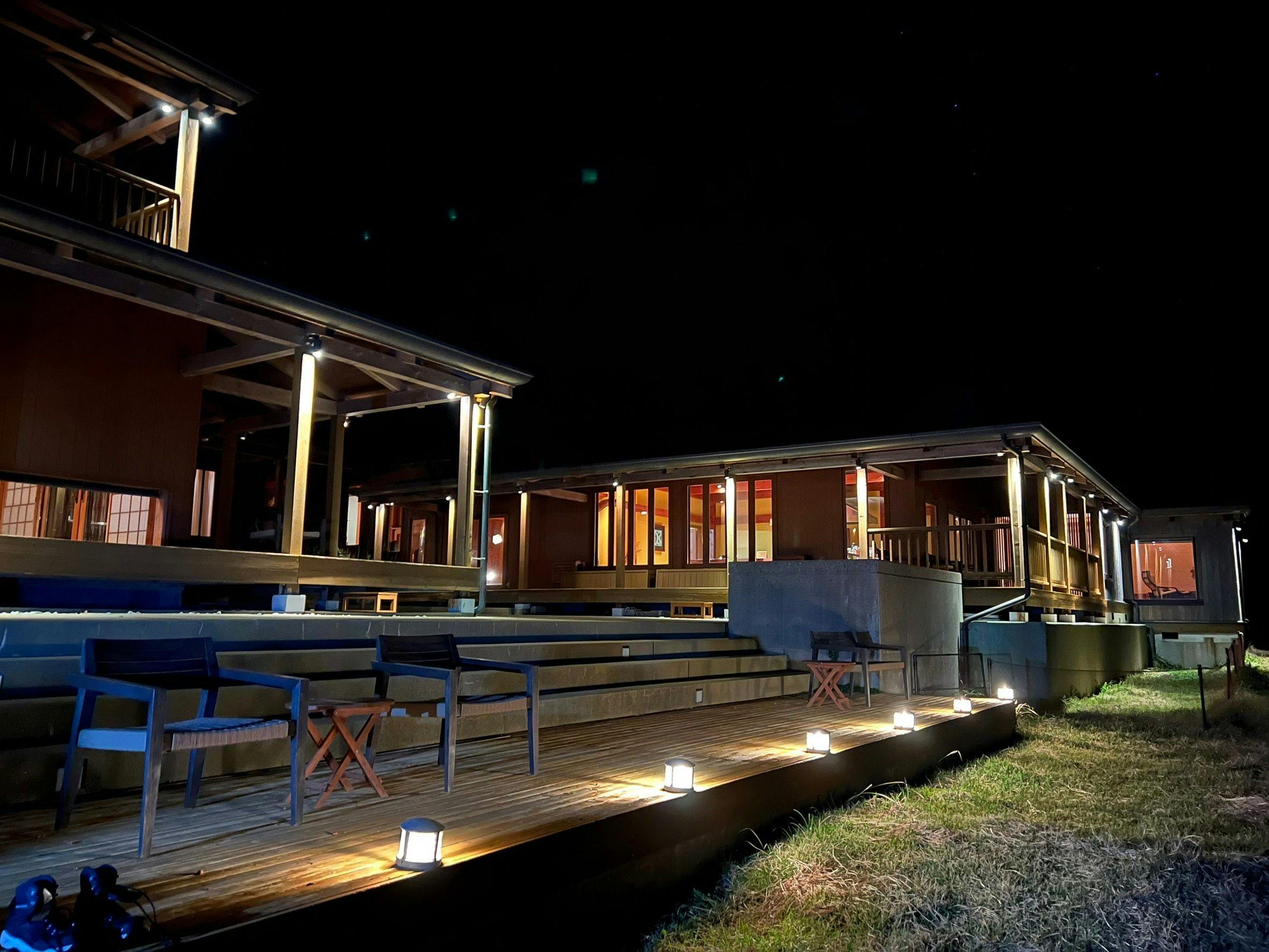 1日1組限定の優雅で贅沢な空間。夜はプライベートシェフによる鉄板料理のフルコース。宮崎県産のステーキや地元西米良の食材を季節ごとに活かした夕食は最高の贅沢。