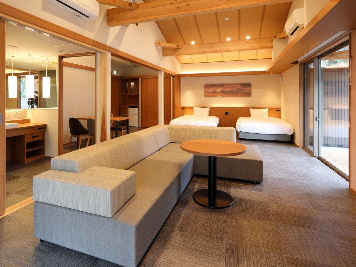 全室離れ形式の天然温泉付きお部屋で、ペットを連れて安心してお泊まり頂ける本格温泉宿。わんこ専用の温泉を完備したサロンやドッグラン広場などの施設も充実。阿蘇の旬の食材や美しい四季の彩りをお楽しみ下さい。
