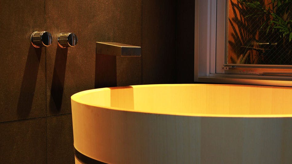 竹林、渓流、檜の香りに抱かれながら広い浴槽でゆっくりと癒しの時間を。