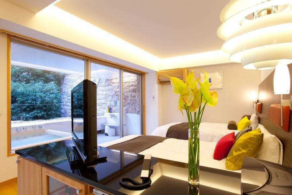 雄大な由布岳の麓、由布院の街に、それぞれに趣向を凝らした十三棟 14室の離れ宿いずれも専用のお風呂を完備し、和モダンをテーマにした部屋は、大人の隠れ家にふさわしい佇まいを醸し出しています。