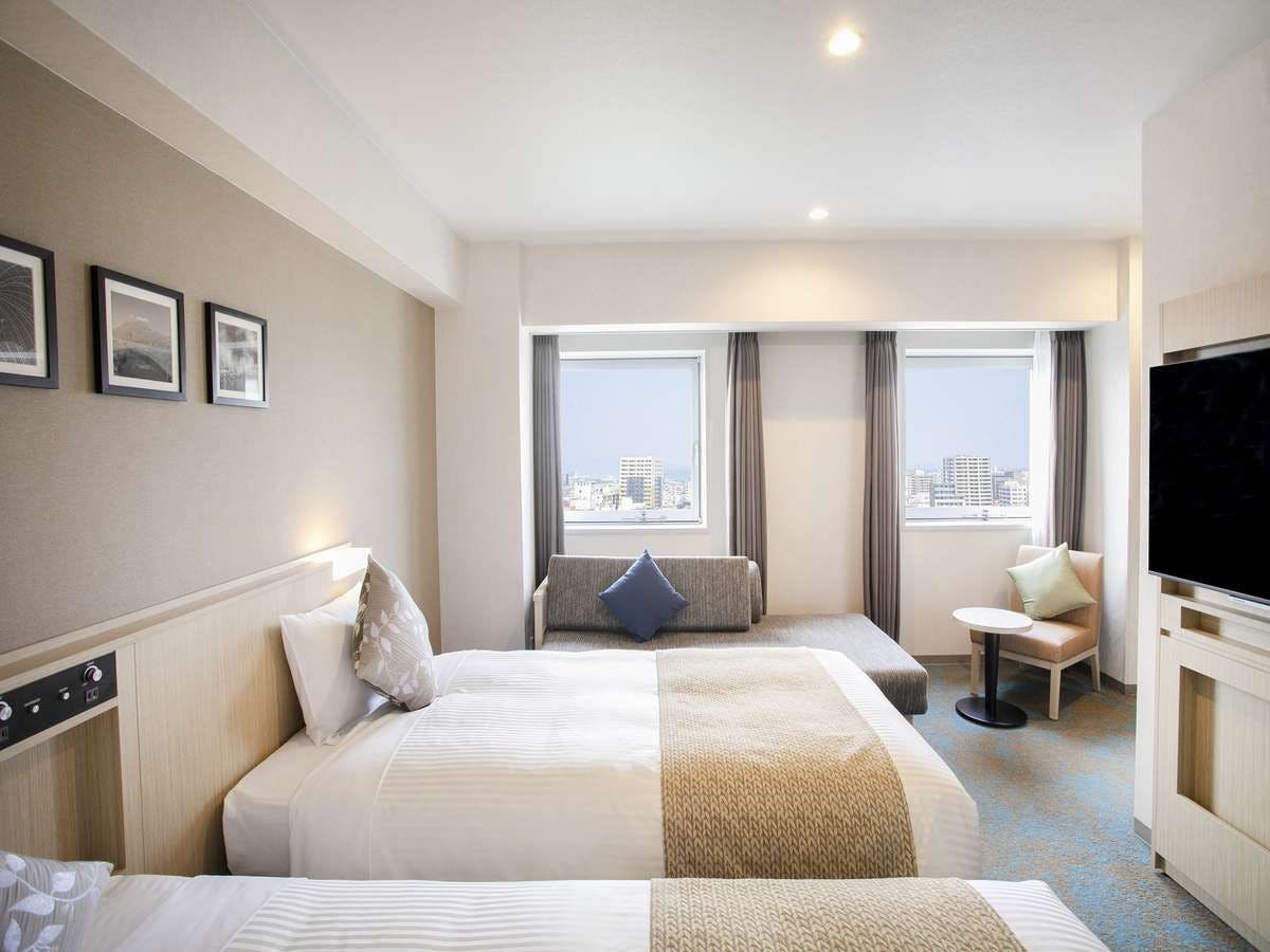 宮崎一の繁華街「一番街」中心部で好立地。男女別天然温泉完備。オーガニックサラダや焼き立てパンが自慢の朝食。カクテルアワーにはラウンジにて地元・宮崎産焼酎などを無料でご提供。