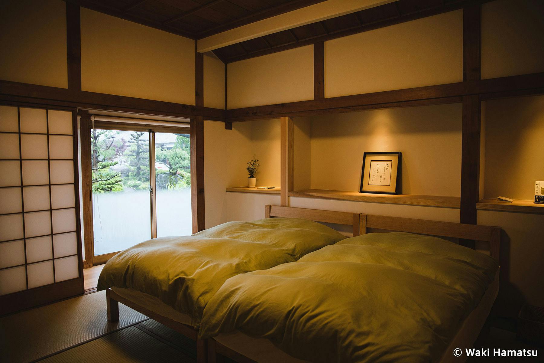 時間と向き合う、自分と向き合う、大切な人と向き合う、お茶の心を体験する貸切宿です。歴史あるお屋敷の一部、57坪を2019年5月にリノベーションしてオープン。23畳の瞑想ルームや縁側でマインドフルネス。