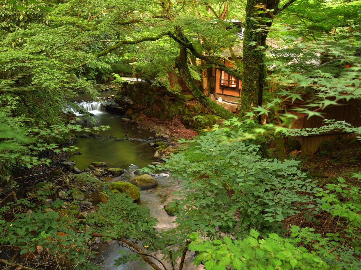 秘境七滝の渓流沿いに集落のように立ち並ぶ離れの宿。約5000坪の敷地に離れはわずか6棟。全室源泉掛け流しの温泉付きで贅沢なプライベート空間を楽しめます。新緑・紅葉・雪景色と四季を通して訪れたい一軒。