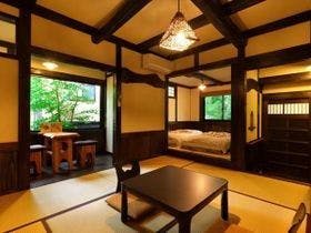 商業施設も温泉街もない“はげの湯”で創業160年。全7室に8種の湯処がすべて貸切。チェックアウト12時で朝ものんびり温泉三昧。お部屋は、掘り炬燵付き和洋室や2間続きの新客室等、広々としております。