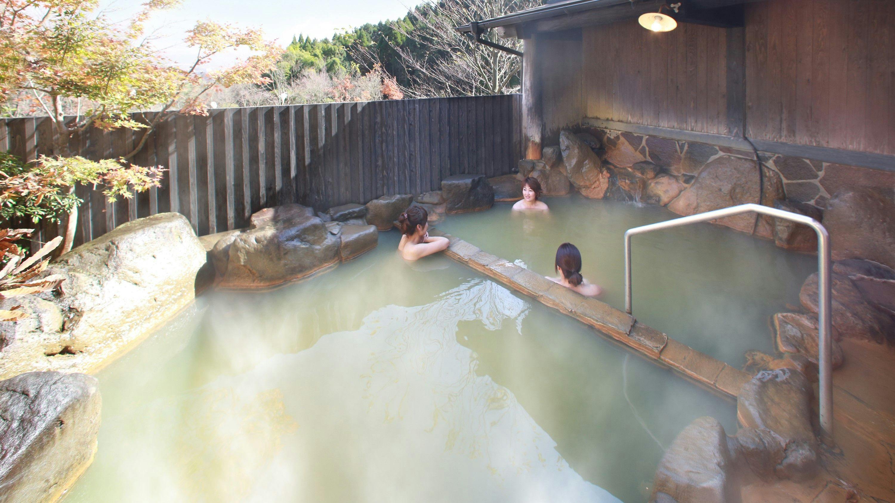 杖立温泉は開湯1700年。豊富で上質な泉質として有名です。適度な滑りのある湯は別名「べっぴんの湯」とも呼ばれるアルカリ塩泉で、寒い冬でも湯冷めをしません。