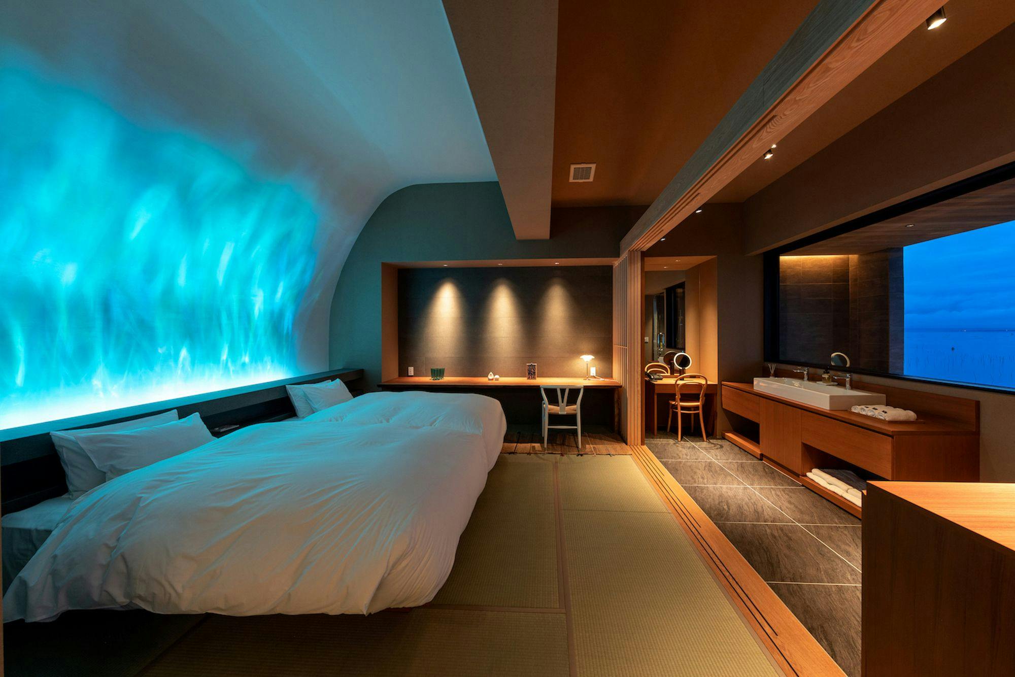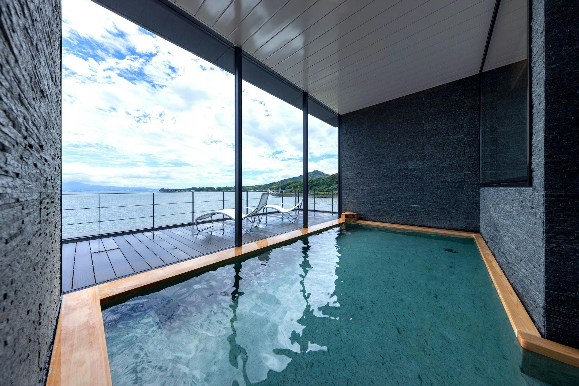 目の前には唐津湾。ロケーションは抜群。全国的にも珍しい“汐湯”と旬の食材が織りなすホンモノの贅沢。インターも近く福岡からのアクセスも良好!しっとりした雰囲気漂うモダンな旅館で大人の休日を。
