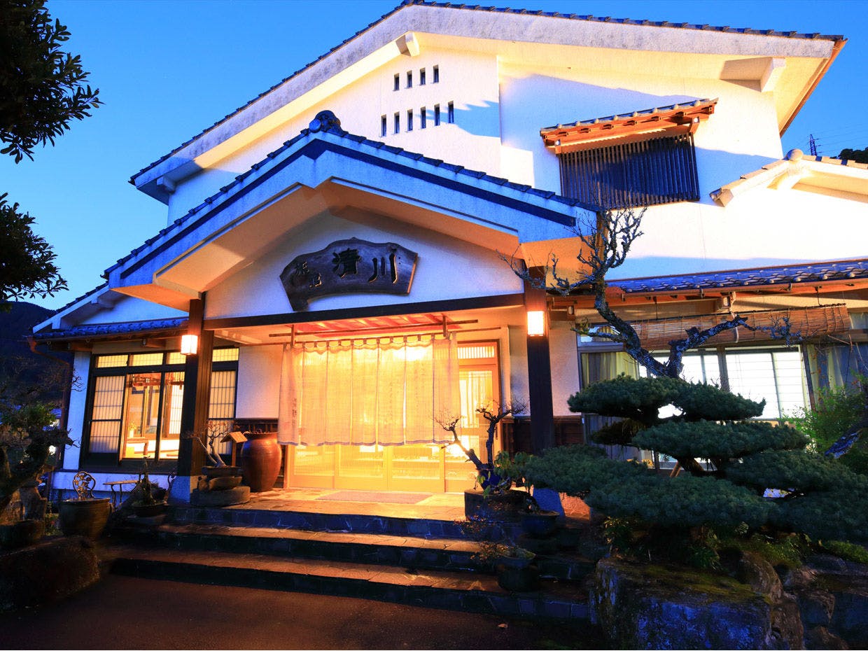 嬉野川沿いに佇む全14室の温泉宿。日本3大美肌の湯として知られる嬉野温泉を源泉かけ流しで楽しめます。自慢のA5伊万里牛ステーキやコラーゲンたっぷりの美肌水炊き会席と併せて存分にご堪能ください。