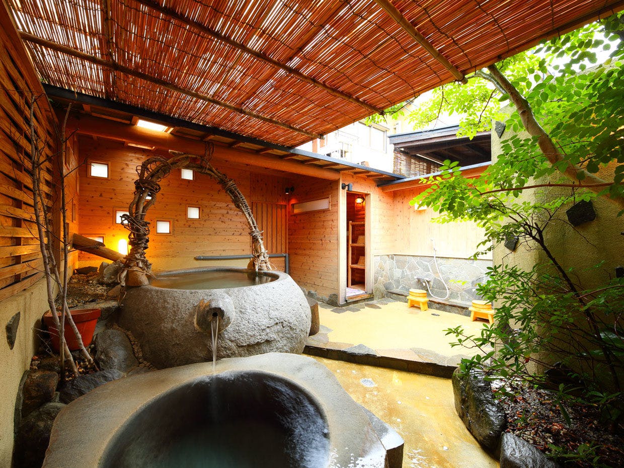 温泉街から少し離れて佇む小さな料理宿。オリジナリティー溢れる創作料理はそのボリューム感にも圧倒されます。全室露天or半露天付きで日本三大美肌の湯をいつでも堪能。急須型のユニークな貸切風呂も人気です。