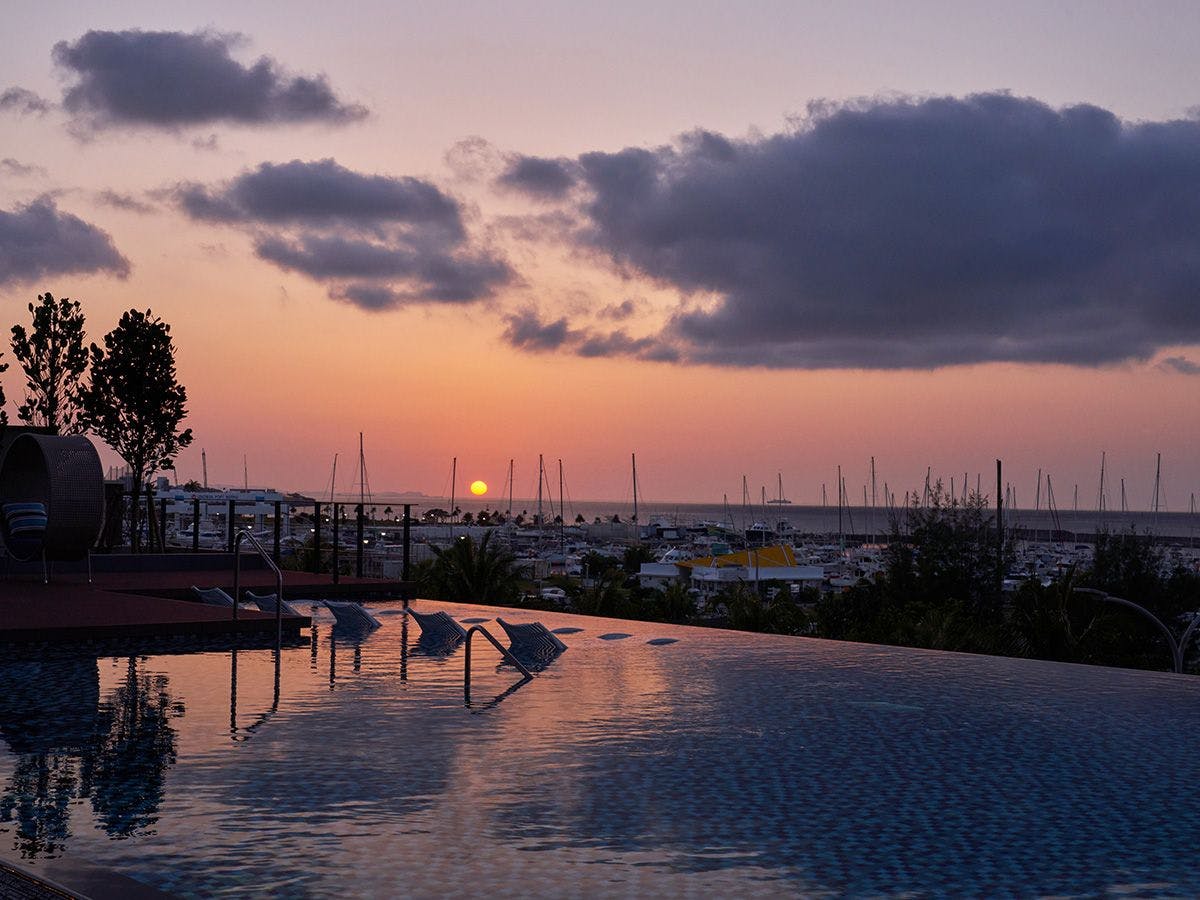 全室オーシャンビュー。美ら海を夕陽がオレンジ色に染める絶景が非日常へ誘います。ラグジュアリーで心晴れやかな沖縄時間を。