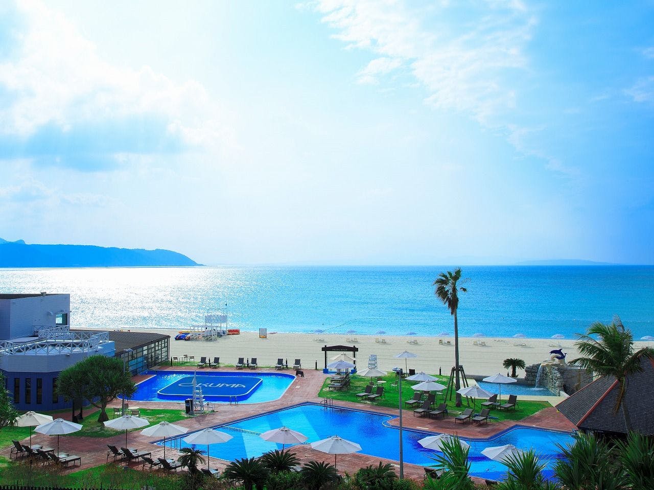 ●全室正面に海が見えるオーシャンフロント!バルコニー付 ●ステージショー7/22~8/31毎日開催18:30~、19:30~ 宿泊者参加無料! ●連泊で温泉やディナー1回付などプランにより特典多数!