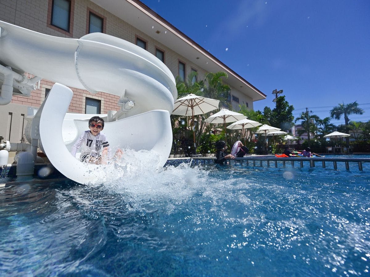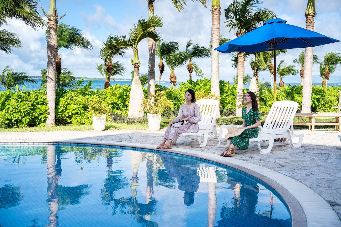 宮古島の美しい海を求めて来島するトラベラーのご期待に添えるファミリーホテル。南国の雰囲気が漂う「本館」と、オーシャンビュー広がる「タワー館」の2棟を構え、海を間近に眺めることができます