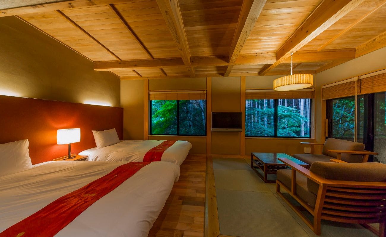 標高1340mのバラギ高原で、雄大な自然に包まれる高原のホテルラパン。8部屋全てに半露天風呂とダイニングを備え、うち2部屋に岩盤浴を完備、独創フレンチとゆっくりとした時間をお過ごしください。