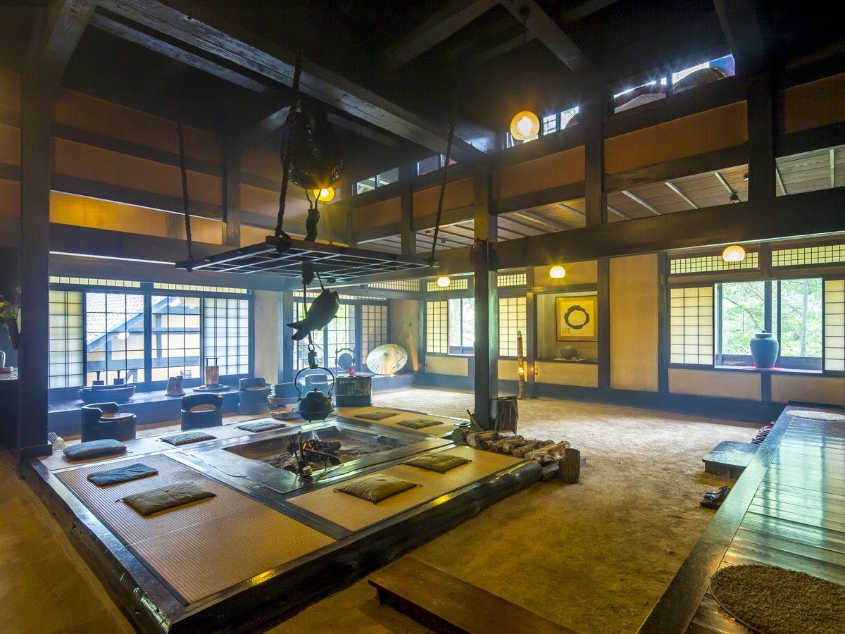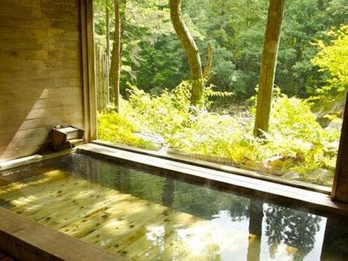 清流が流れる15000坪もの大自然に抱かれた、わずか8室の宿。1室ずつ個性の光る客室からは、絵画のようなパノラマを一望。純日本料理を楽しんだ後は囲炉裏でかっぽ酒をどうぞ。