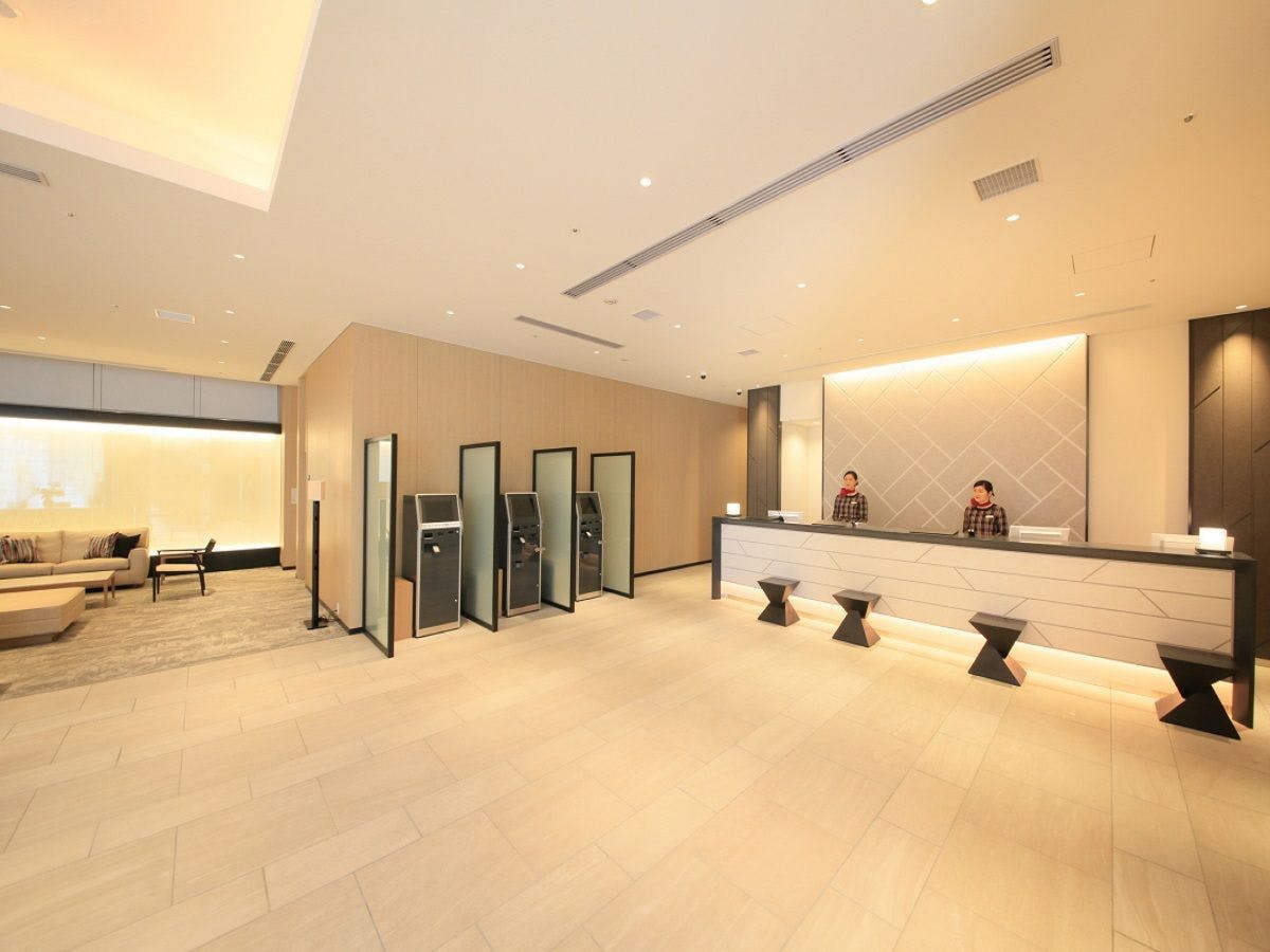 JR博多駅(筑紫口)に隣接し、地下鉄博多駅(東4番出口)にも直結で”福岡空港から約5分で雨でも濡れずにチェックインOK”。コンビニやスターバックス、スポーツジム、レストラン街など付帯施設も充実。