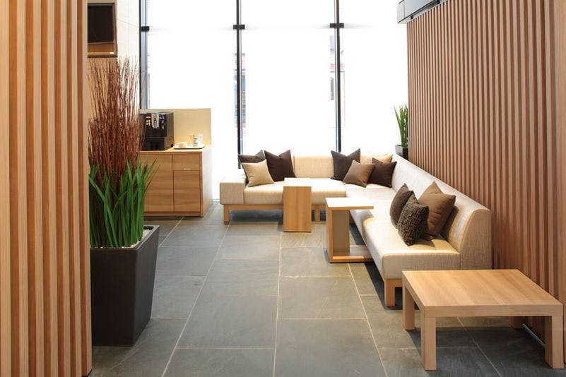 広々としたロビーやフロントスペース。ゆとり漂う空間で皆様を笑顔でお迎えする「スマイルホテル熊谷」。