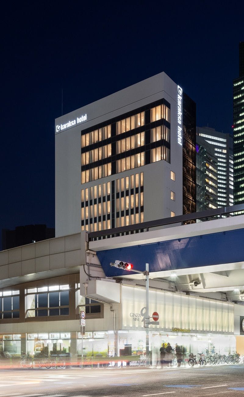 徒歩で銀座駅まで10分、新橋駅まで6分。宿泊者専用の2階ラウンジではワインがお一人様2杯まで無料。Serta製特注マットレスではごゆっくりお休み頂けます。