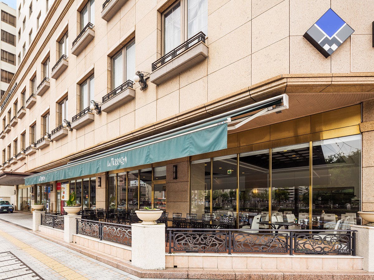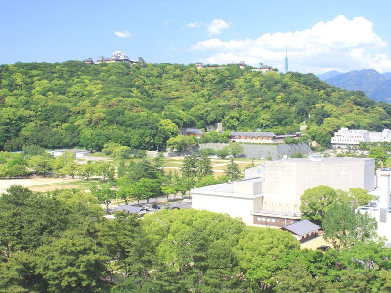 「坂の上の雲の街」松山のお堀沿いに位置し、市内を走る路面電車もホテルからすぐ乗車可能。松山城側の客室からはお堀越しの松山城をご覧いただけます。瀬戸内バル「ラ・テラッツァ」にて鯛めし朝食ご提供