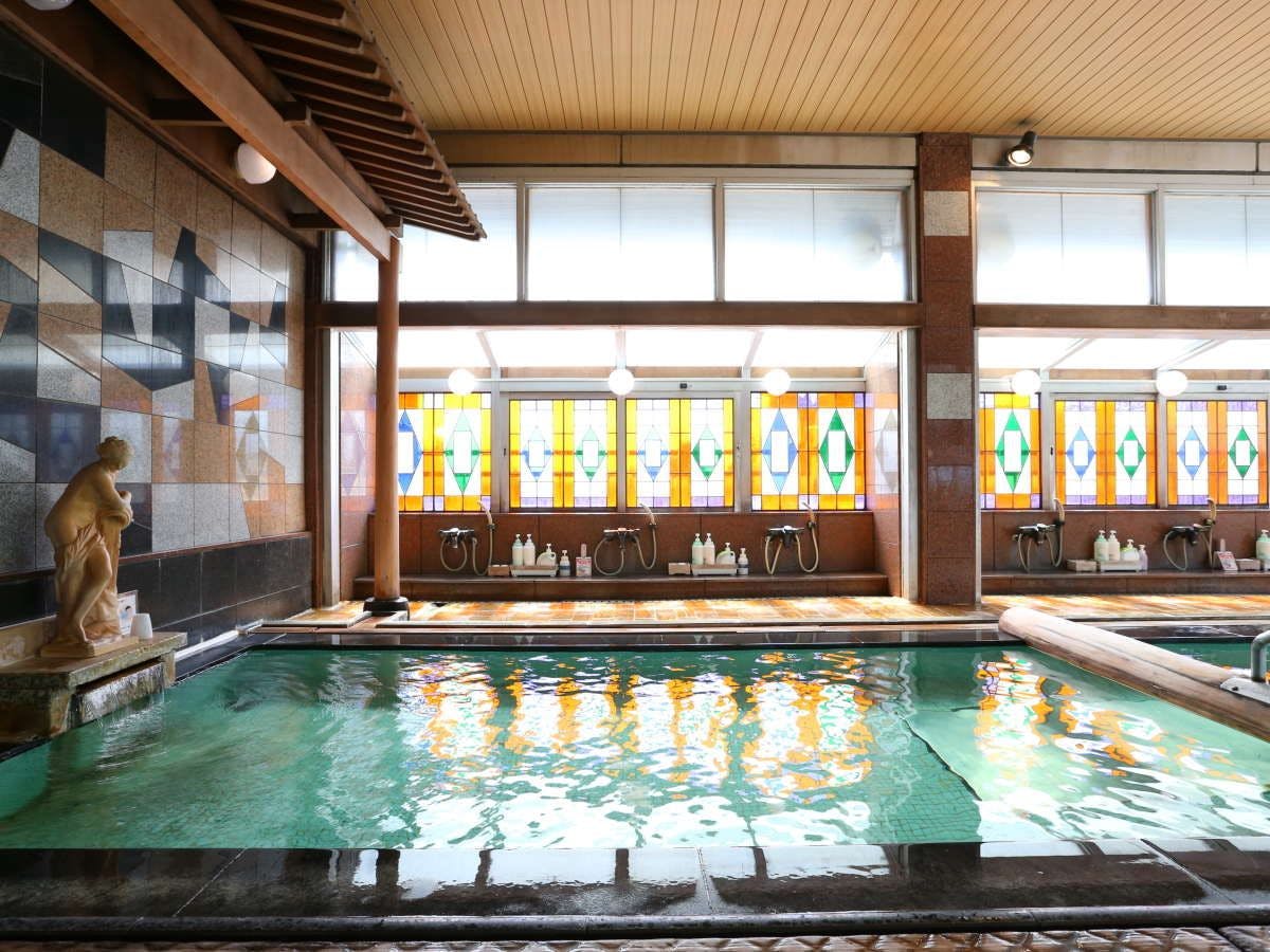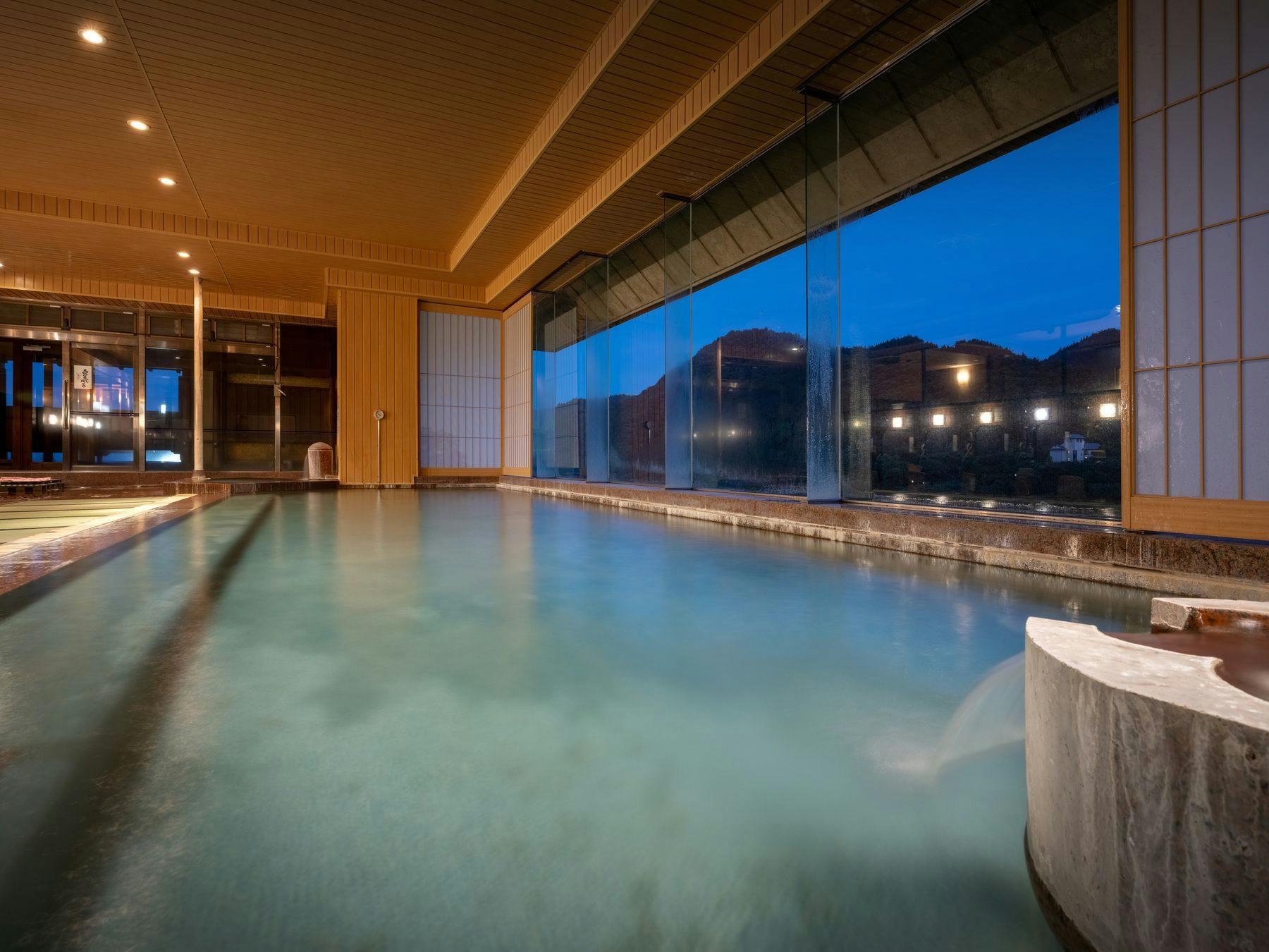 湯量豊富な二つに源泉を持つ宿。7階最上階にある畳み敷き展望風呂「萩姫の湯」はガラス張りの明るく広々とした浴室です。四季折々の景観を眺めながらお楽しみ下さい。