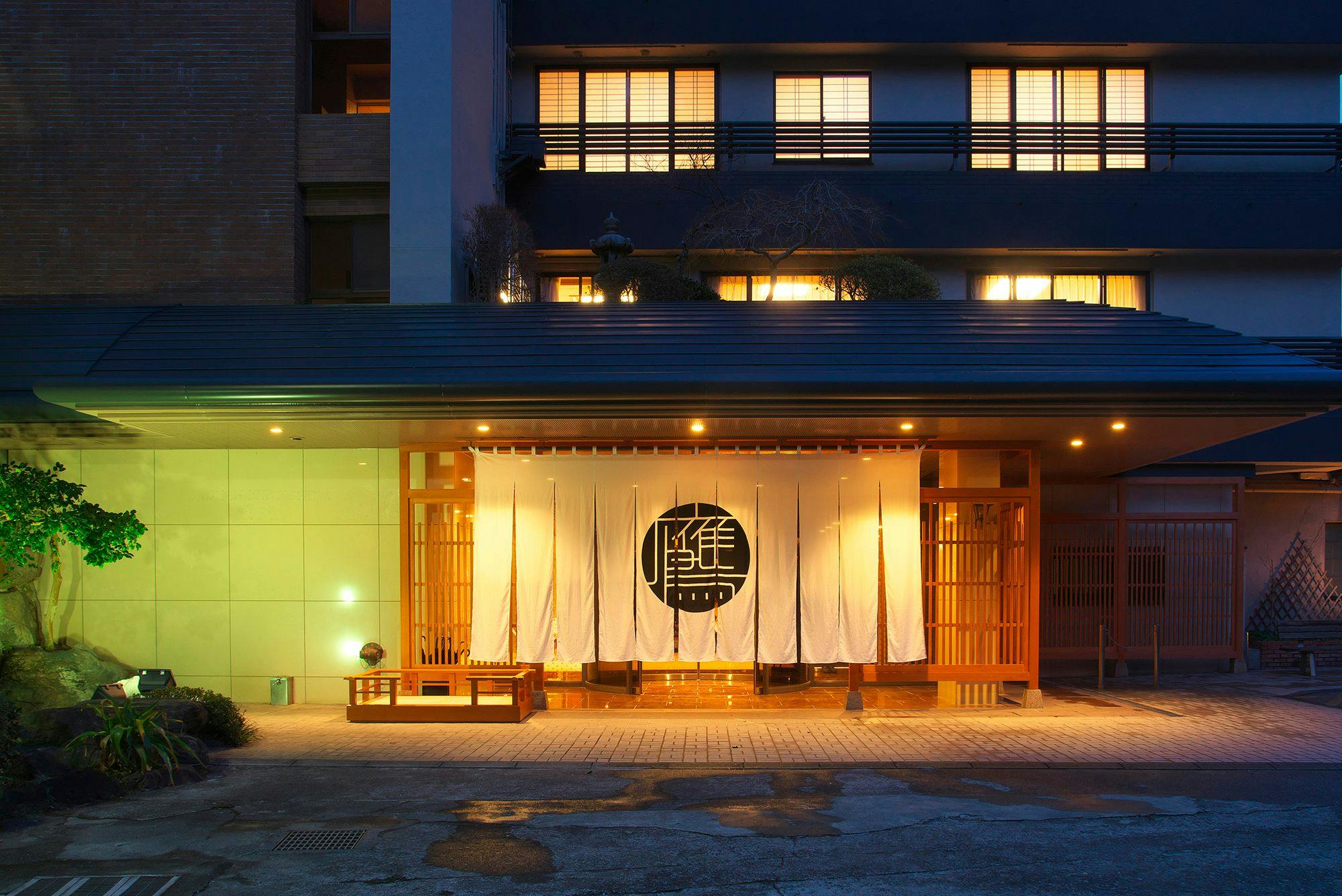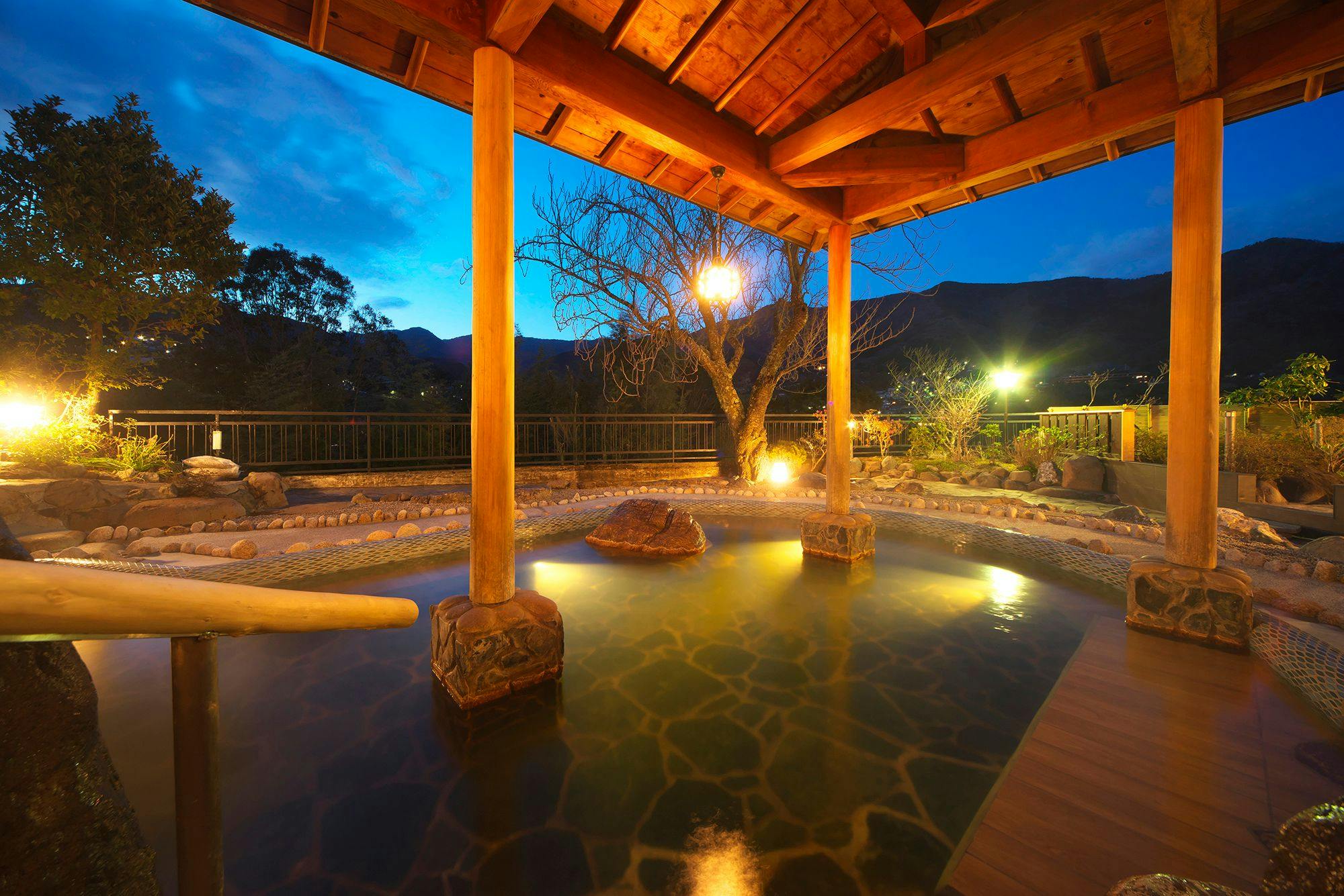 湯河原の高台に建ち、箱根連山を望む百景野天風呂と貸切展望露天風呂が人気。喧騒から離れた静かな宿。