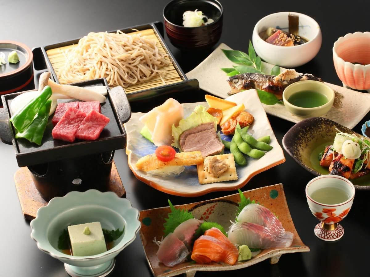 創業明治元年、民芸蔵造りのノスタルジックな温泉宿。野趣溢れる庭園を望む回廊は天然温泉100 %の露天風呂や足湯・歩行湯に続きます。館主が毎日打つ信州産100%のそば粉を使用した手打ちそばも人気です。
