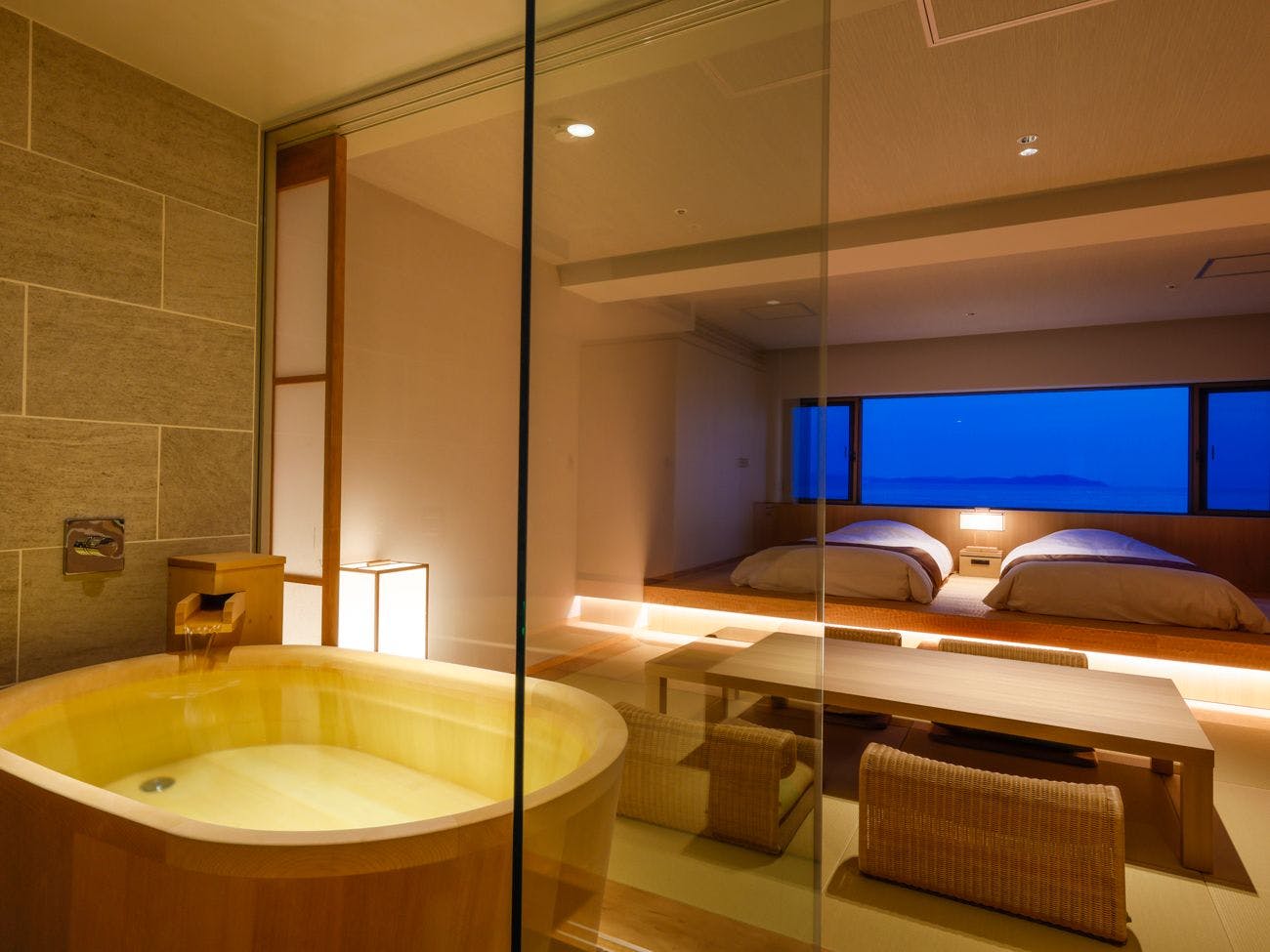 全客室オーシャンビュー、淡路の海を望む温泉旅館。窓の外に広がる180度のパノラマは正に絶景。階毎に異なるコンセプトの客室や、豊富なプラン誇ります。自分の楽しみ方を選べる、どんな世代にもお勧めの一軒。