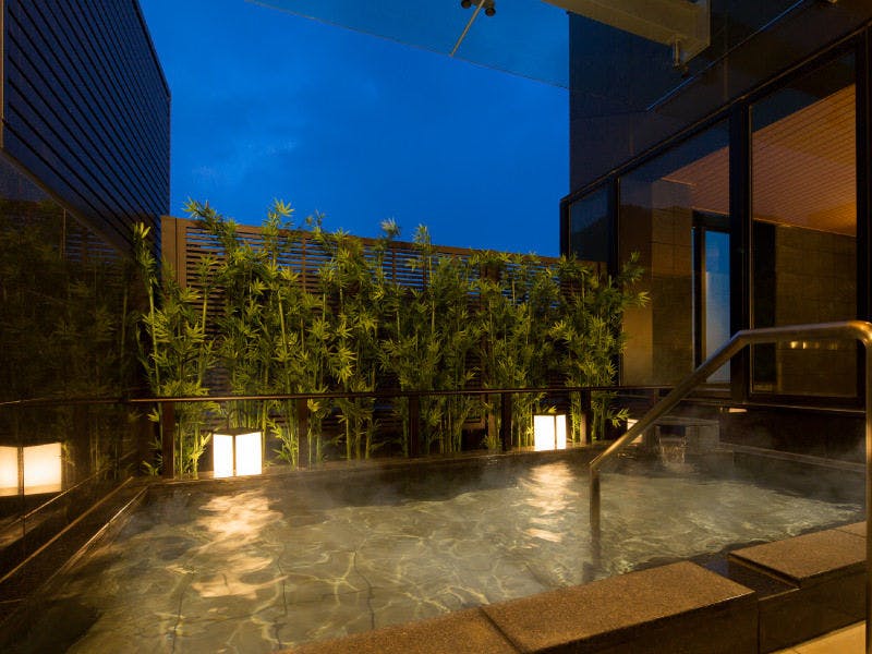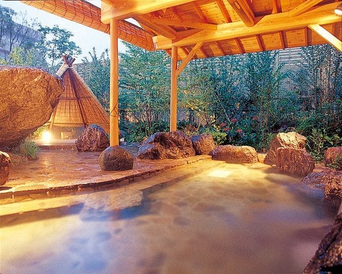 西日本最大級の大露天風呂は、なんと一度に500人が入れるほどの広さで、まるで一つのアトラクションのような楽しさがあります。とうとうと流れる掛け流しの温泉に身を委ねて、存分に開放感を味わってください。