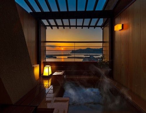 こみなとの新鮮な魚介類をふんだんに使った漁師料理の宿。食べきれない程のボリュームと自慢の味をご堪能ください。また、最上階の海一望の貸切露天風呂の眺めは普段の疲れを癒してくれます。