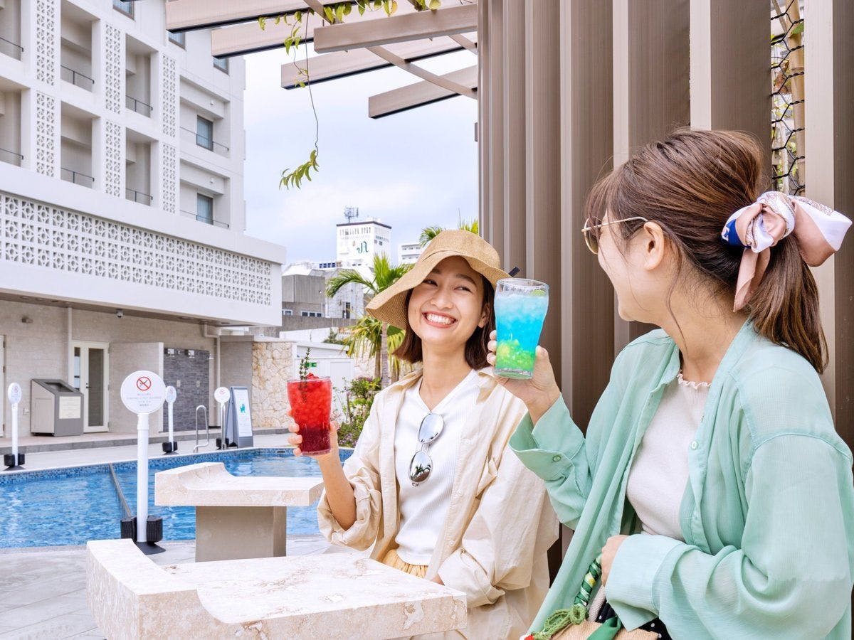 モノレール駅から徒歩1分・国際通りまで徒歩2分。滞在中無料オリオンビール・泡盛・ハイボール・各店・アイスが食べ飲み放題!・添い寝なら12歳まで無料