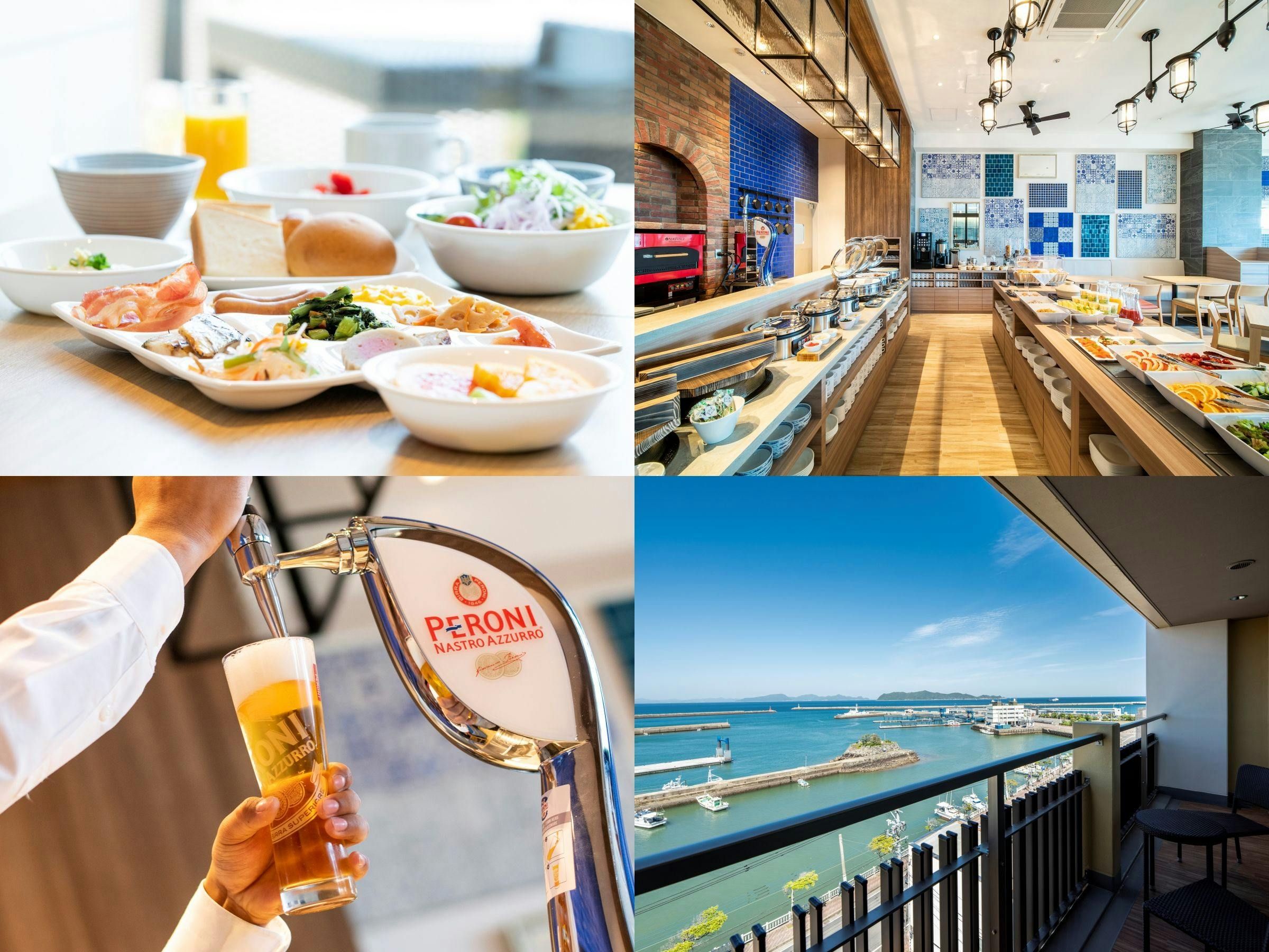 五島の海「碧色~aoiro~」で彩られた空間、シンプルでありながら快適なホテルステイと、五島灘の旬の味わいや観光をお楽しみいただけます。