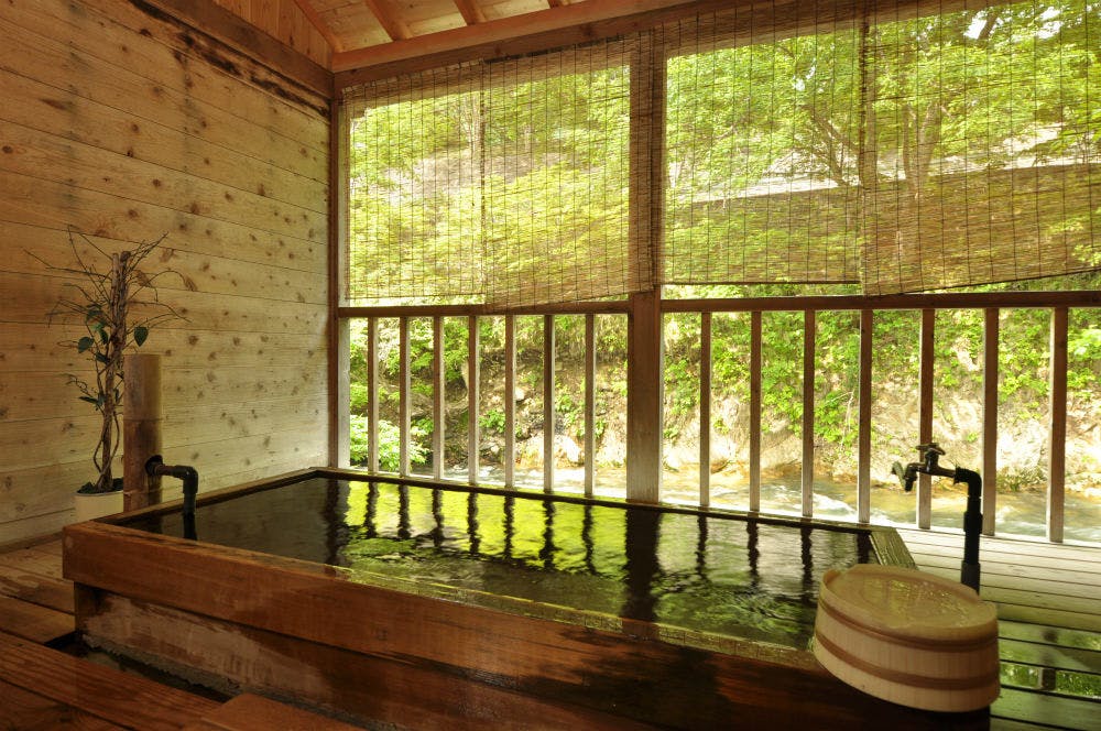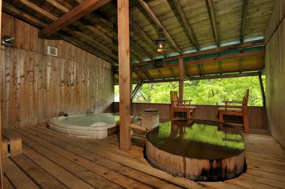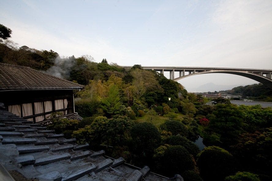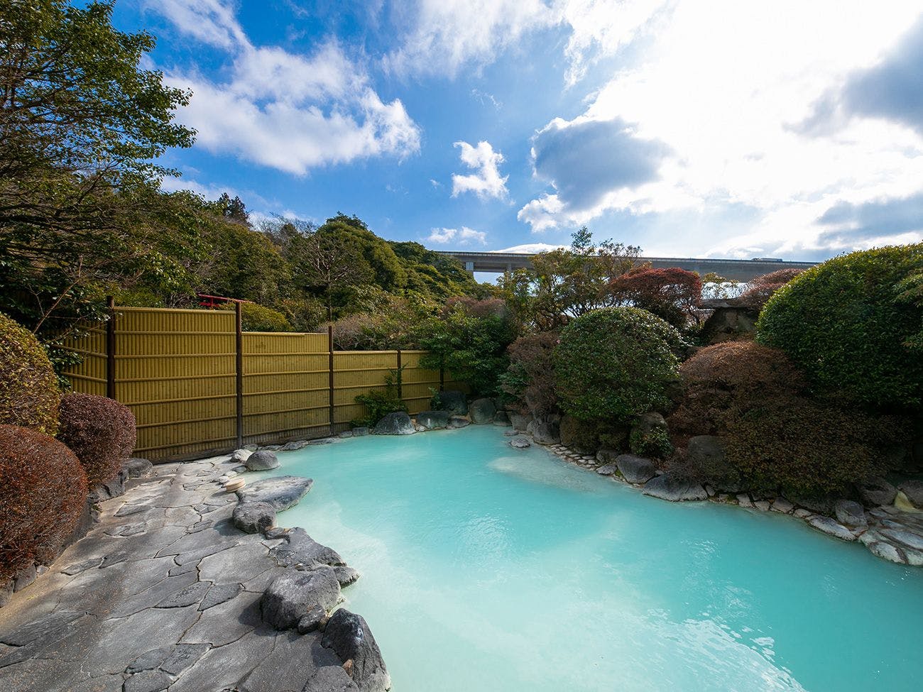 開放感ある庭園露天風呂と青みがかった乳白色のミルキーブルーの温泉が印象的な旅館です。初夏はツツジが咲き、冬はザボンを湯に浮かせて香りを楽しめるのもまた魅力の一つ。明礬でも明治時代から続く温泉宿です。