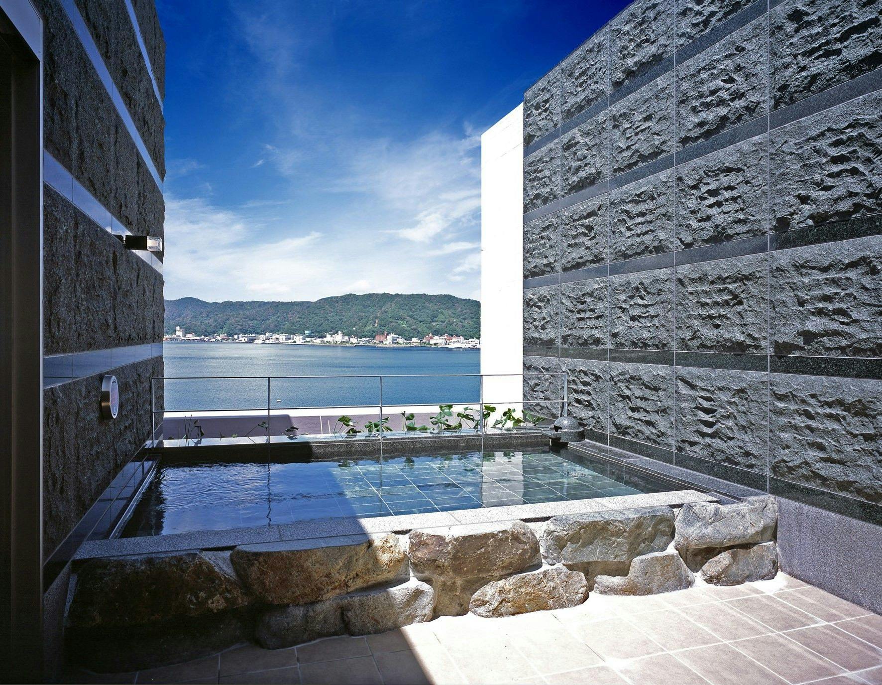 お部屋や最上階にある展望大浴場からも琵琶湖が一望出来、信楽焼の露天風呂や貸切風呂もご利用可能。長浜駅から徒歩5分の好立地にありながら、静かに流れる時間をお過ごしいただけます。
