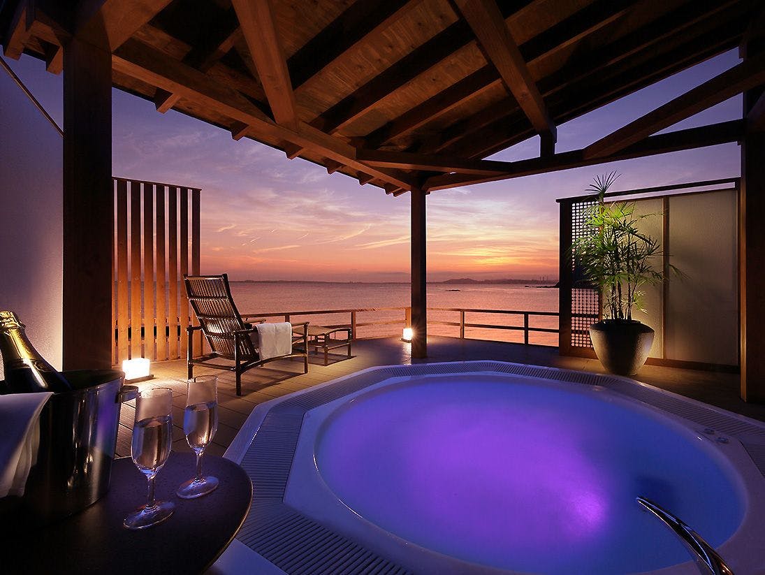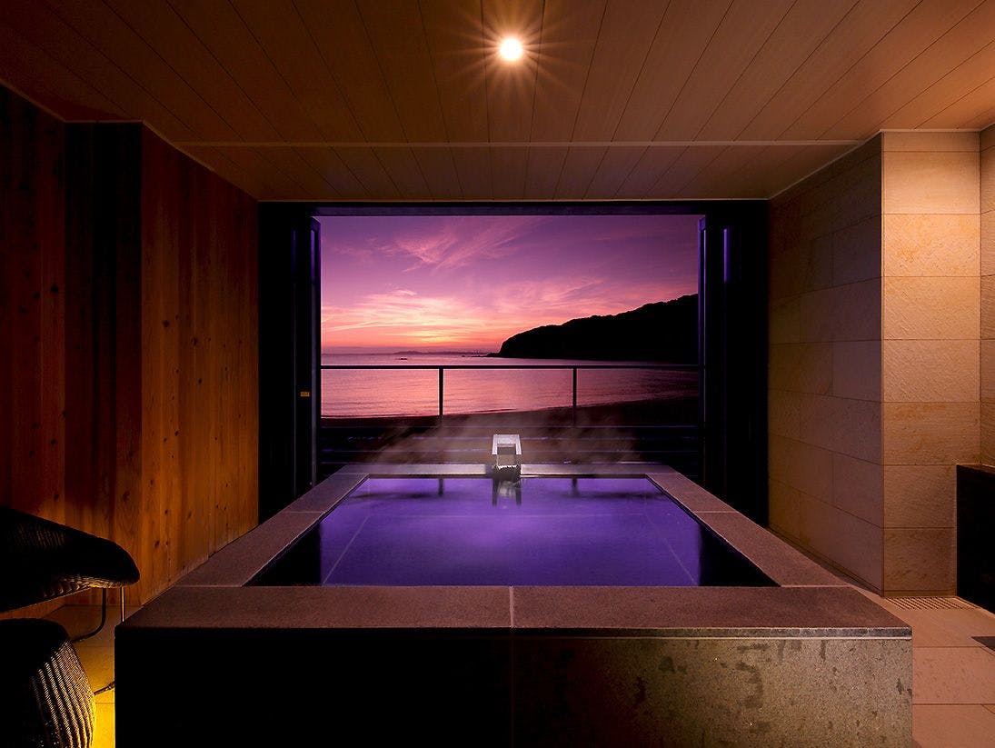 都内からわずか90分のアクセス!砂浜まで徒歩30秒!海が目の前に広がる開放感あふれるお手ごろ近場の温泉リゾート。捕れたての海の幸をふんだんに使用した海鮮料理と、全室オーシャンビューの客室の宿です。