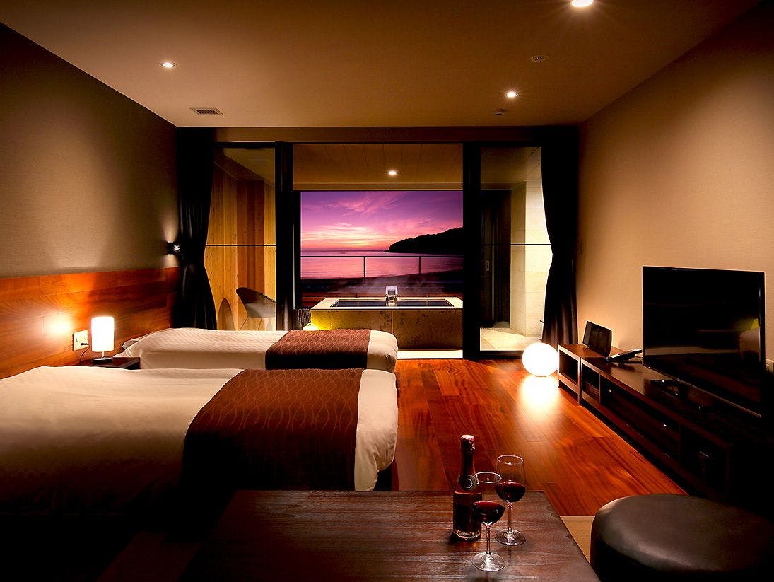全室絶景露天風呂付きのワンちゃんと泊まれる隠れ家宿です。食事は伊豆の海の幸をふんだんに取り入れたフレンチ懐石。最高の眺望に時間を忘れ、非日常の癒しを・・。