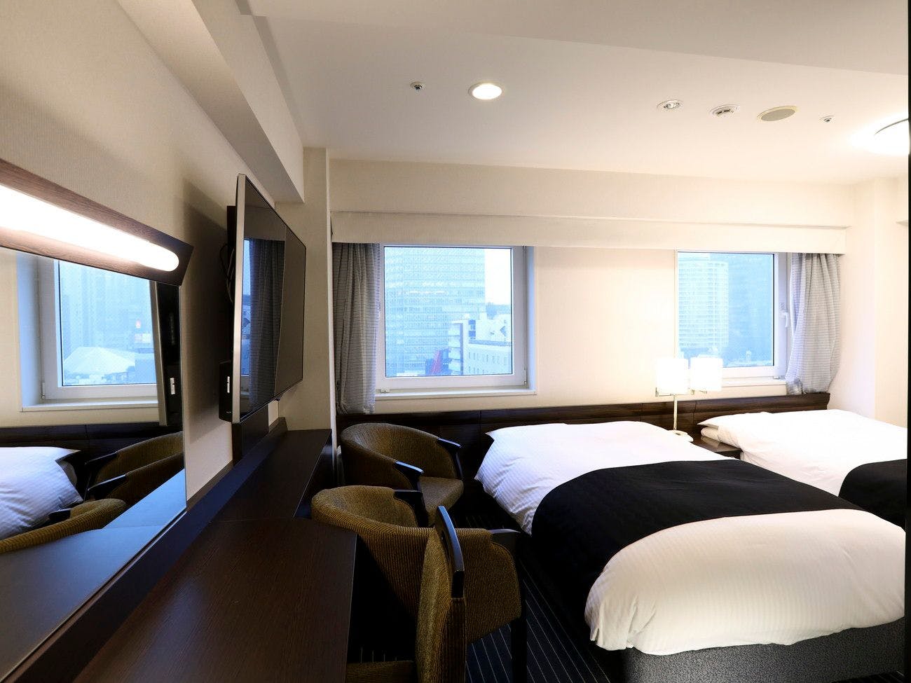 名古屋駅より地下鉄1駅の伏見駅5番出口から徒歩5分と交通も便利。全室25平米の客室!バスも広々、バスタブで足も伸ばせます。17時~20時までウェルカムドリンクサービス。無線LAN利用可能!