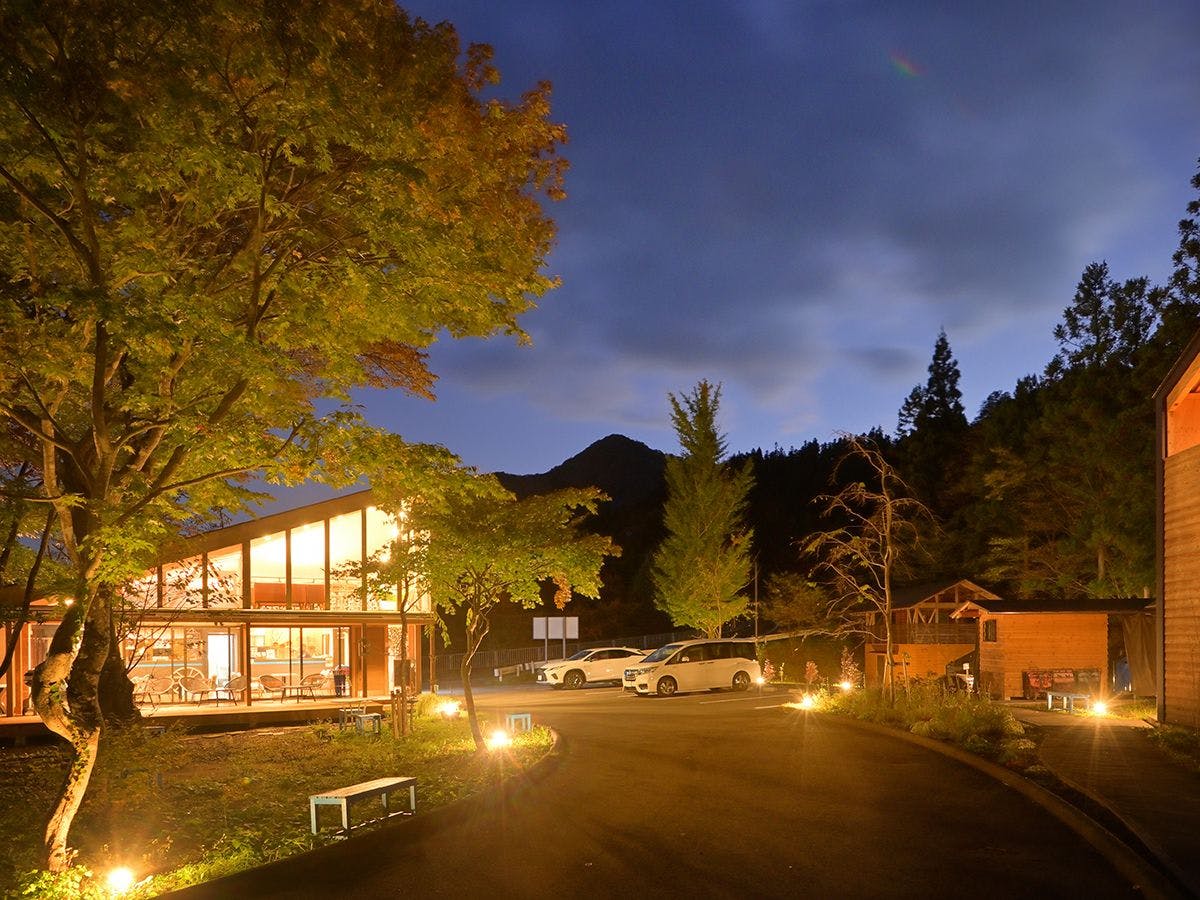 四万の自然と名湯四万温泉がプライベート空間で堪能できるグランピング施設です。貸切のサウナも予約承っています。
