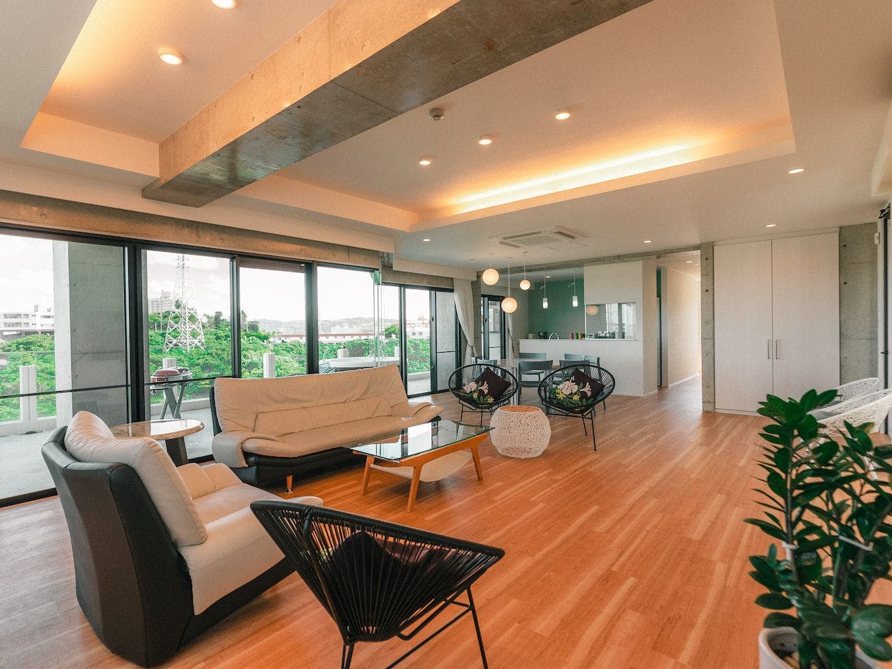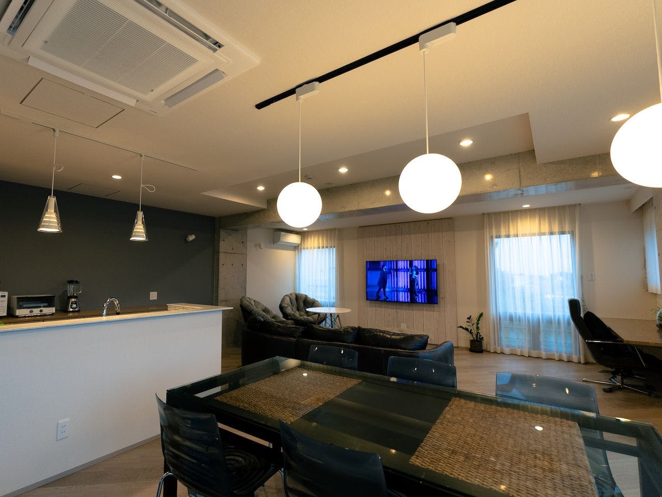 いままでにはない、高級家具とアートが集まった1棟貸し別荘。4ベットルームの平家の1軒家となったおり、子供が走り回るにも最適の広さとなっております。